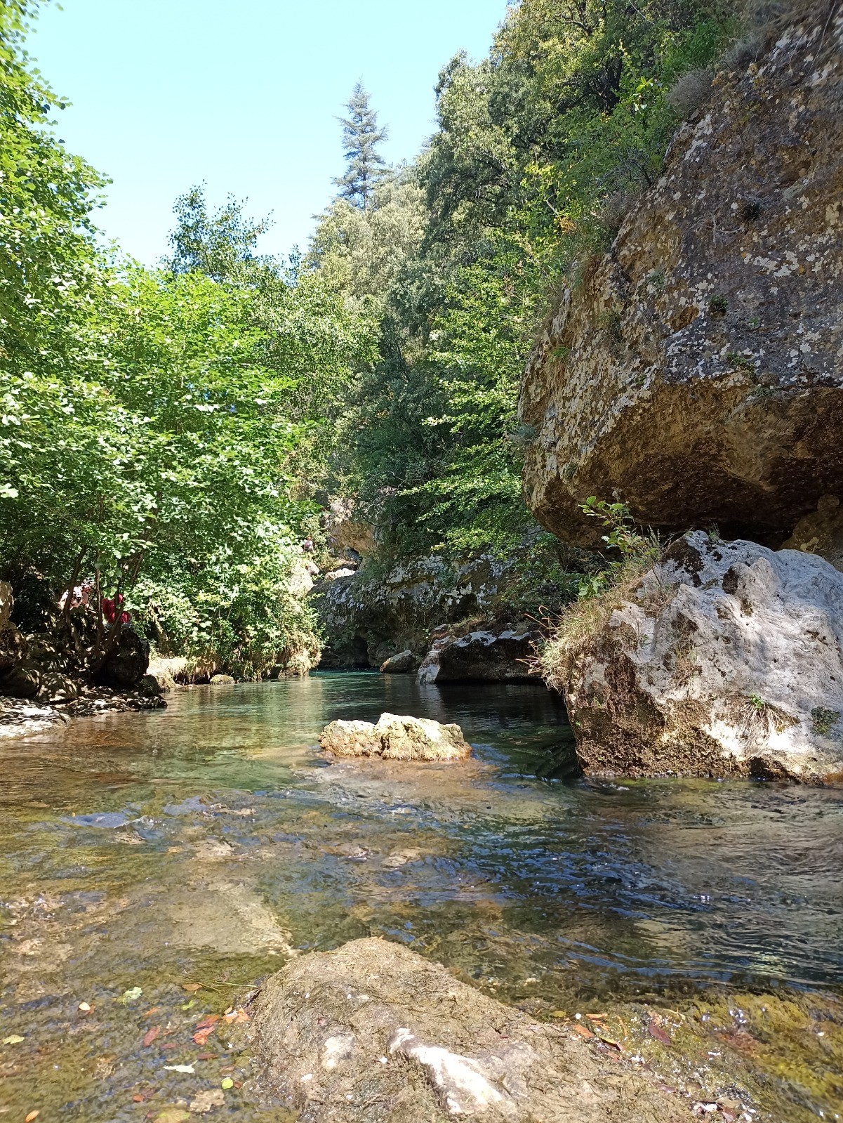 Rando avec de très jolies points de vues sur Navacelle, son cirque et la vallée de la rivière. Plusieurs bains possible si la météo le permet bien sur. Pour nous cela était nécessaire même si la température de l'eau ne dépasse pas 12 au moulins de la Fou. La chaleur de l'été (43) nous oblige au rafraichissement.