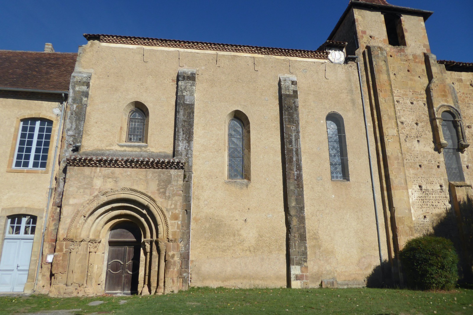 Très beau temps pour faire un tour sur les côteaux. Notre trajet passant près de l'Abbaye de Saint Sever de Rustang, nous avons fait volontairement un petit crochet ...Severus (saint Sever), († vers 502), évangélisateur des pays de l’Adour, était un grand propriétaire issu de famille noble, prêtre d'une paroisse de Bigorre dont Grégoire de Tours louait le soin porté à faire l’aumône et la charité. Il est sanctifié et ses reliques sont apportées dans l'église de Rustan qui changea de nom à la suite de cette déposition des reliques.Son tombeau, sur lequel sont prodigués des miracles, attire de nombreux pèlerins et un monastère est fondé à une date incertaine autour de l’an 800 par des moines bénédictins.L'abbatiale de Saint-Sever est un parfait exemple du style d'architecture qu'ont développé les Bénédictins dans le Sud-Ouest de la France et plus particulièrement en Bigorre.
