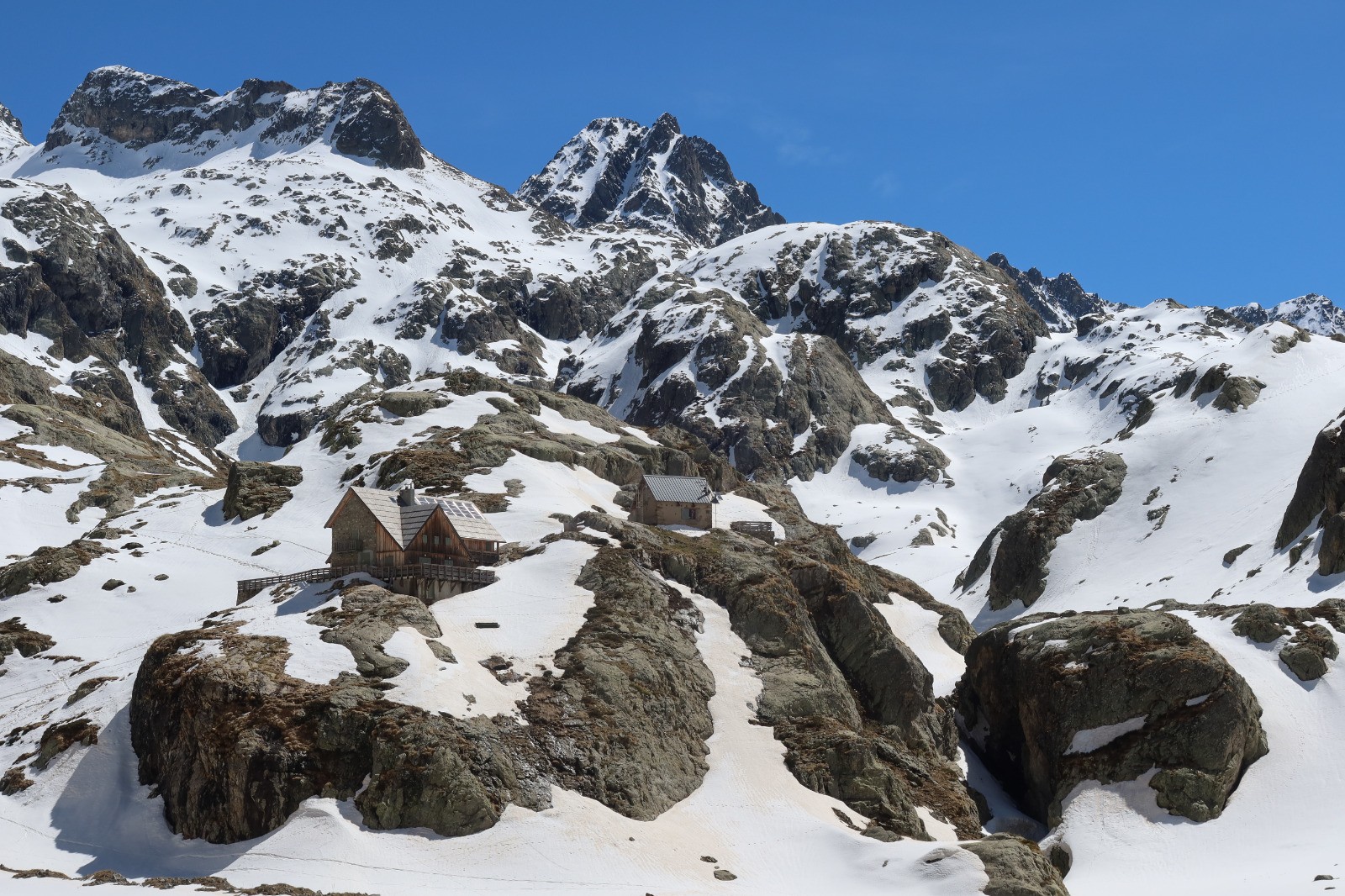 Après la balise 416 arrivée sous la retenue du lac de la Fous puis on longe le lac pour aller sur le refuge de Nice avec sa terrasse magnifique, possibilité de manger et de dormir .