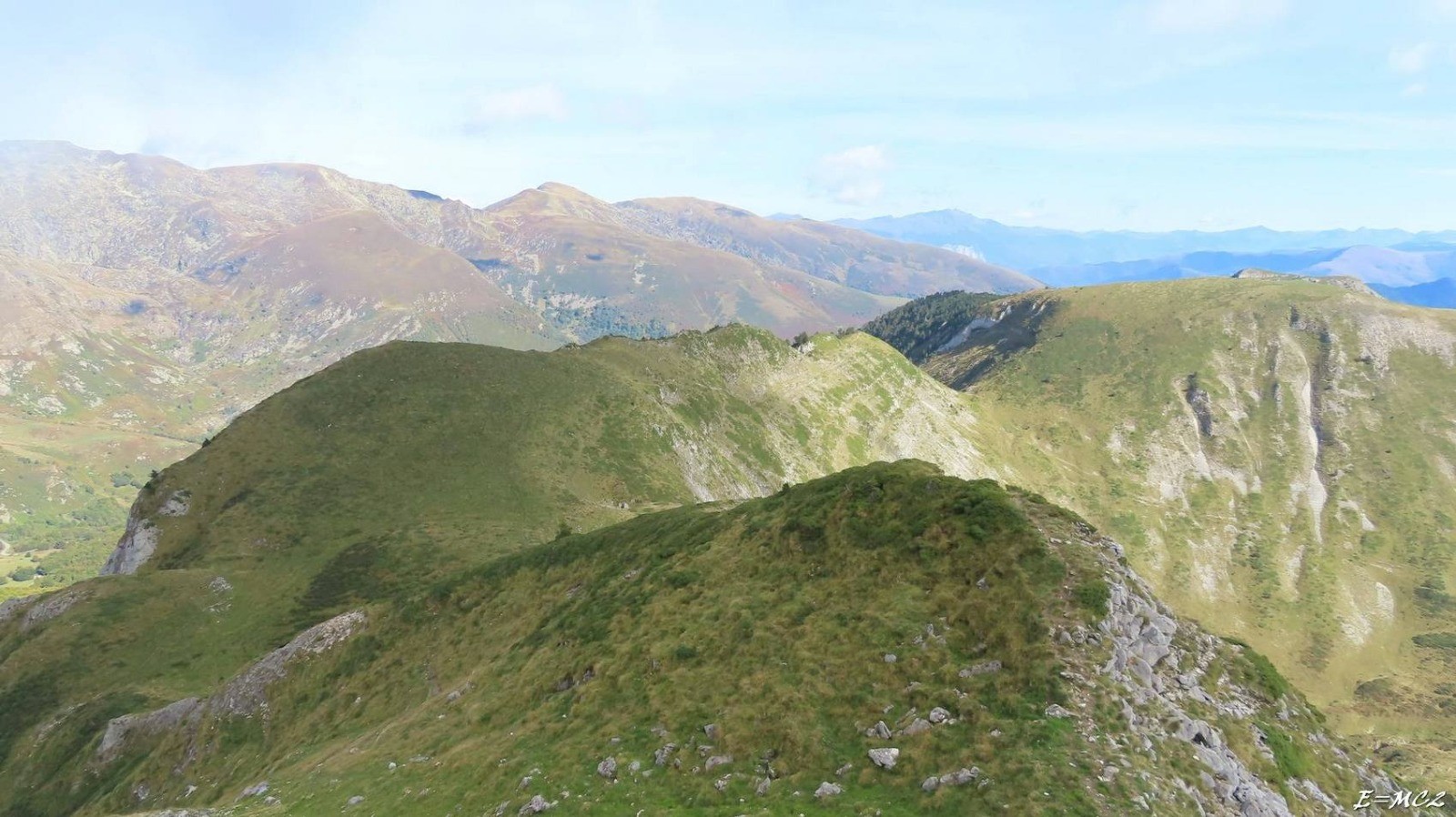 Du Sommet de Bizourtouse, descendre au Col de Bizourtouse par l'une des multiples sentes envahies par la végétation, choisir la meilleure n'est pas évident. Du col, continuer par le sentier de la crête, passage soutenu suivi d'une traversée en léger contre bas de la crête pour finir au Pic de Taupe d'Ourse. De ce sommet descendre au col qui lui fait suite et monter au Pic de Girantes ou Mont Ceint sans difficulté particulière.