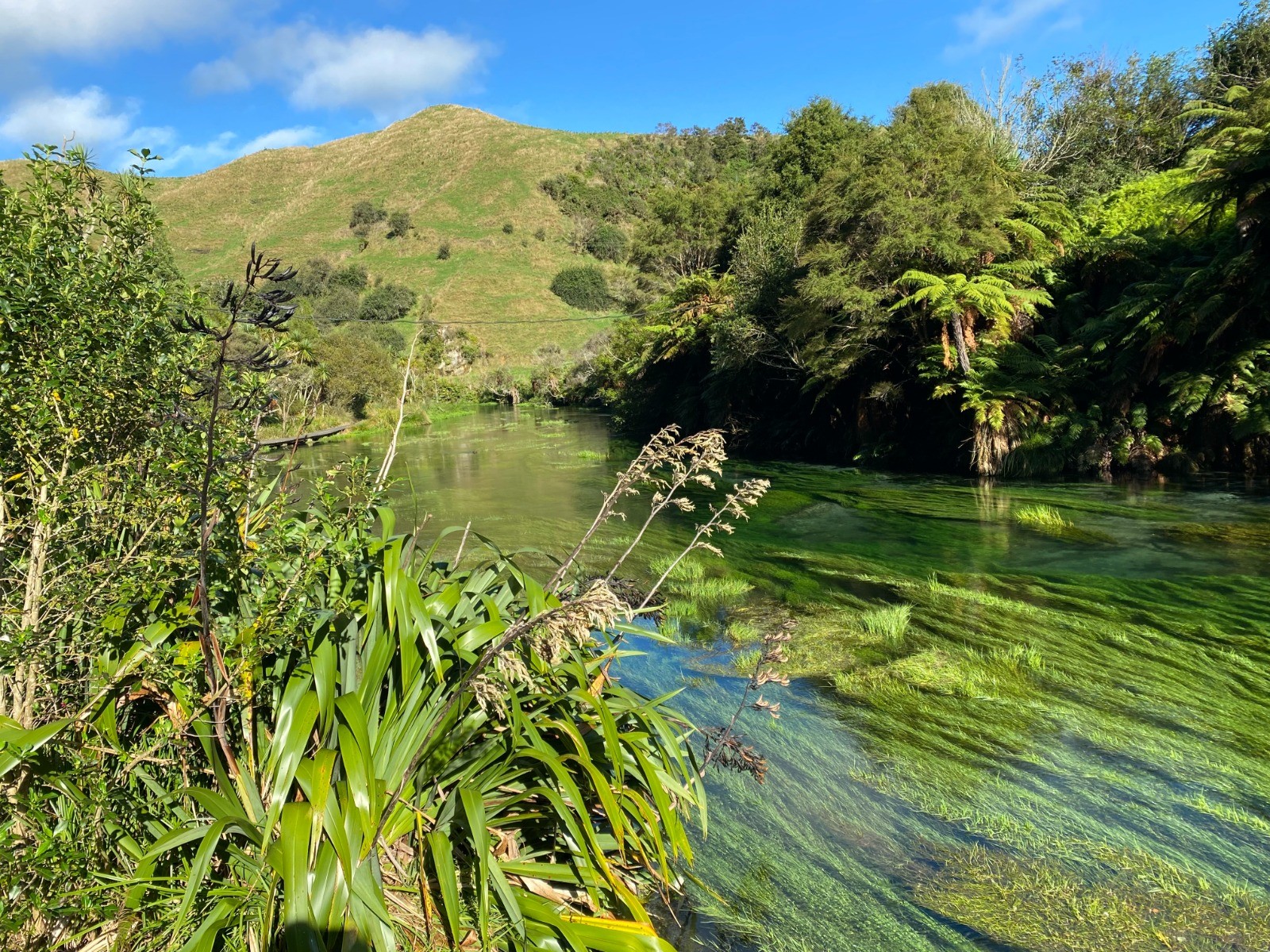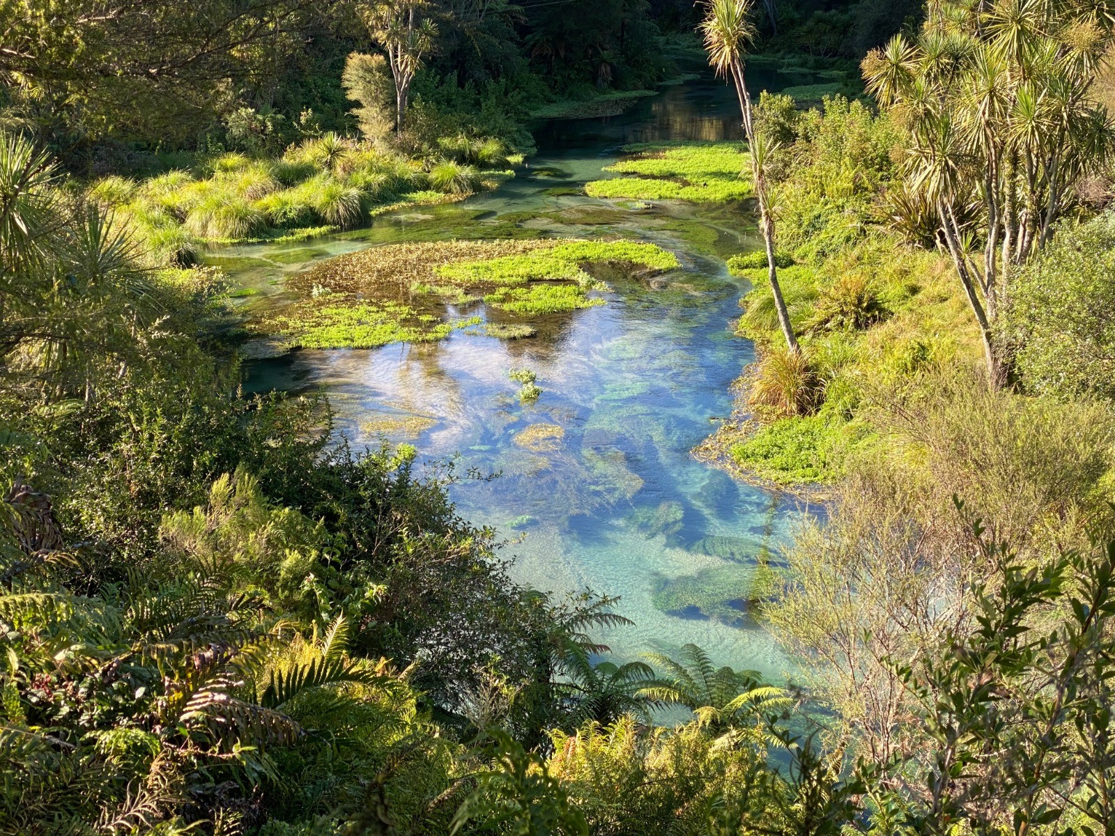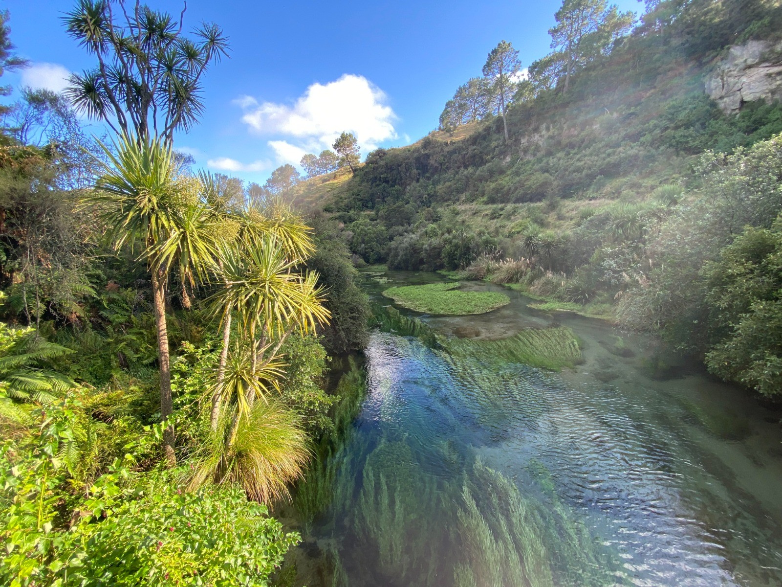 Nous avons apprécié de voir des truites nager dans l'eau cristalline en suivant la piste le long de la rivière jusqu'à la source bleue.