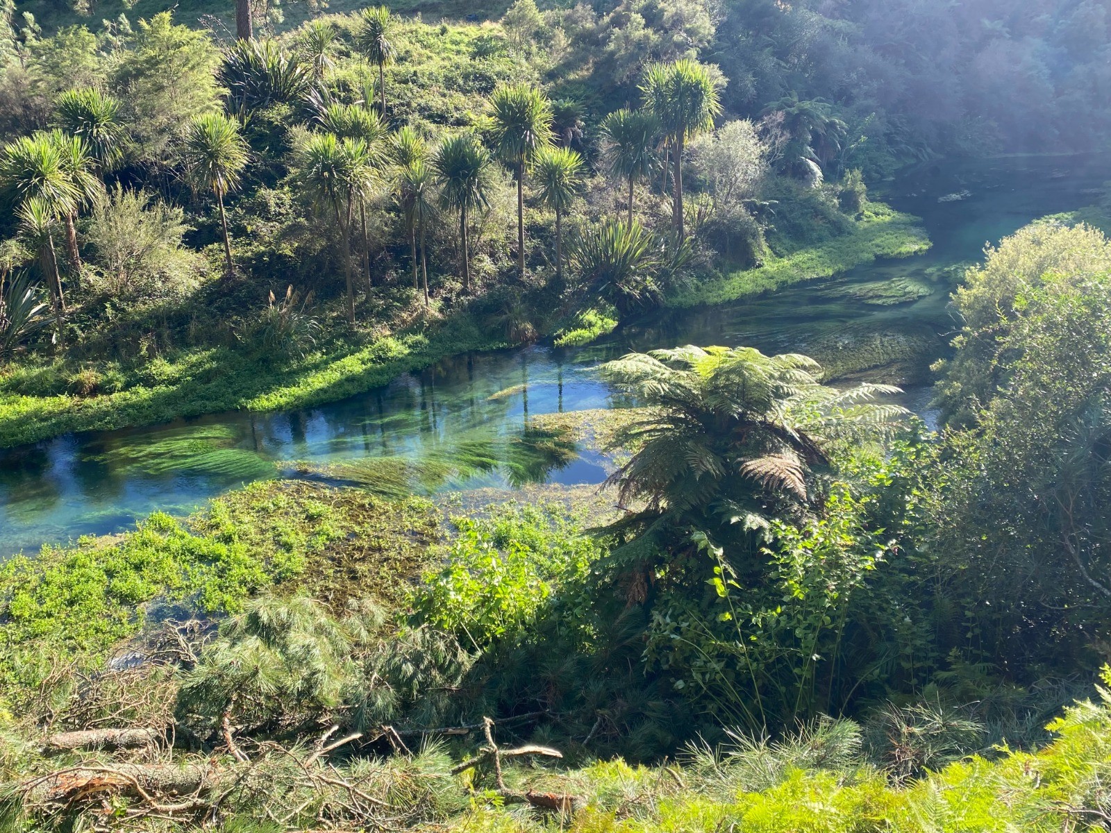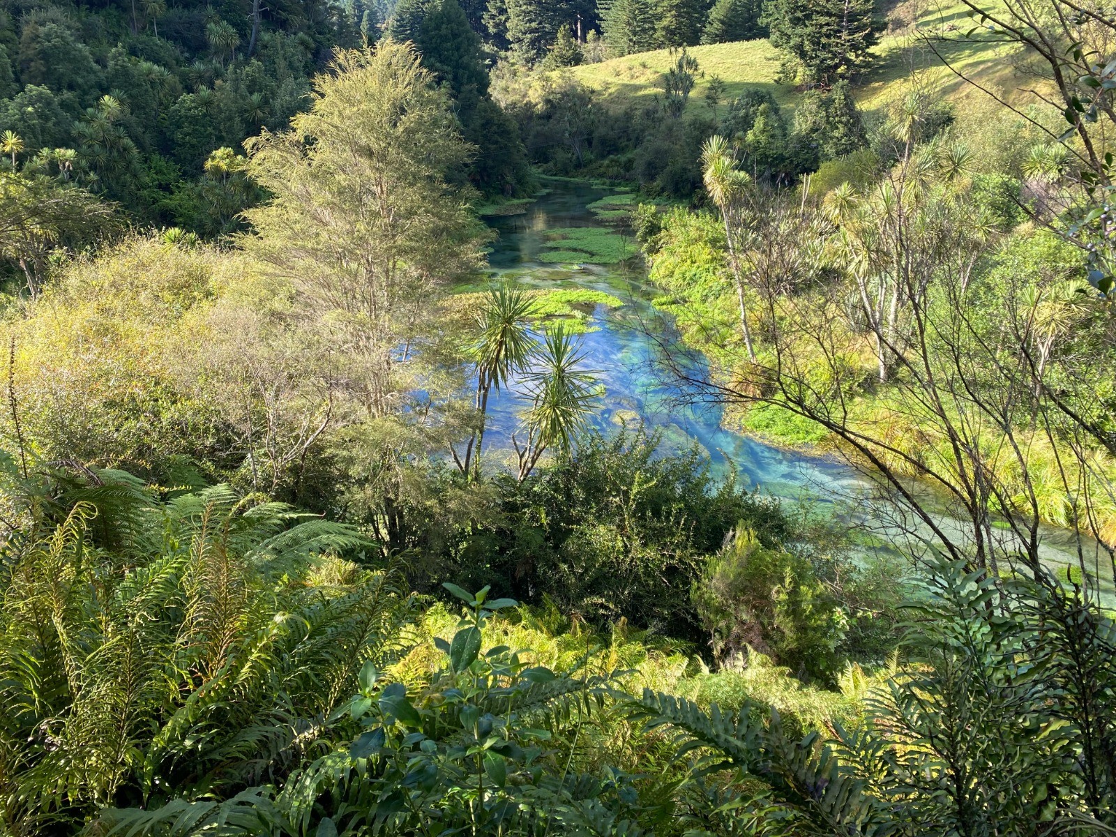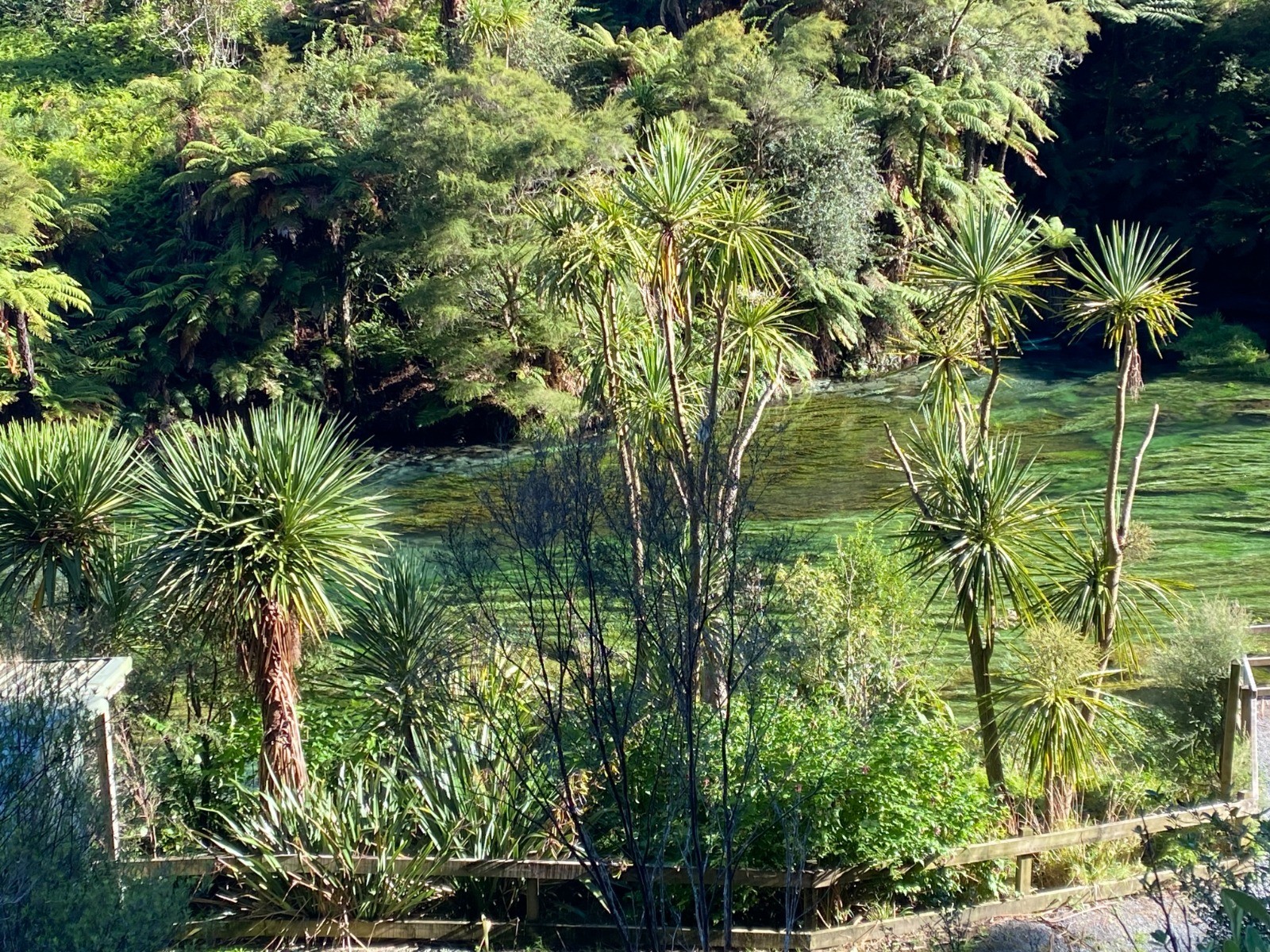 Nous avons apprécié de voir des truites nager dans l'eau cristalline en suivant la piste le long de la rivière jusqu'à la source bleue.