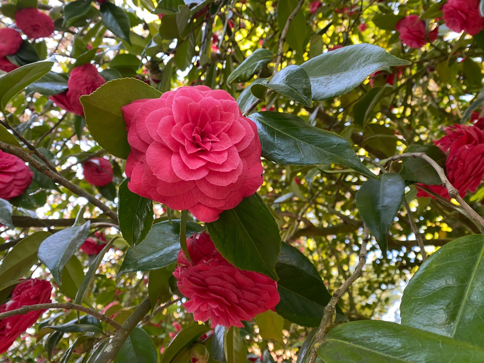 Parmi les fleurs qui égaient ce parcours, les genêts ( photo no 5 ) et les camélias ( photo no 8 ) sont au top de leur floraison.