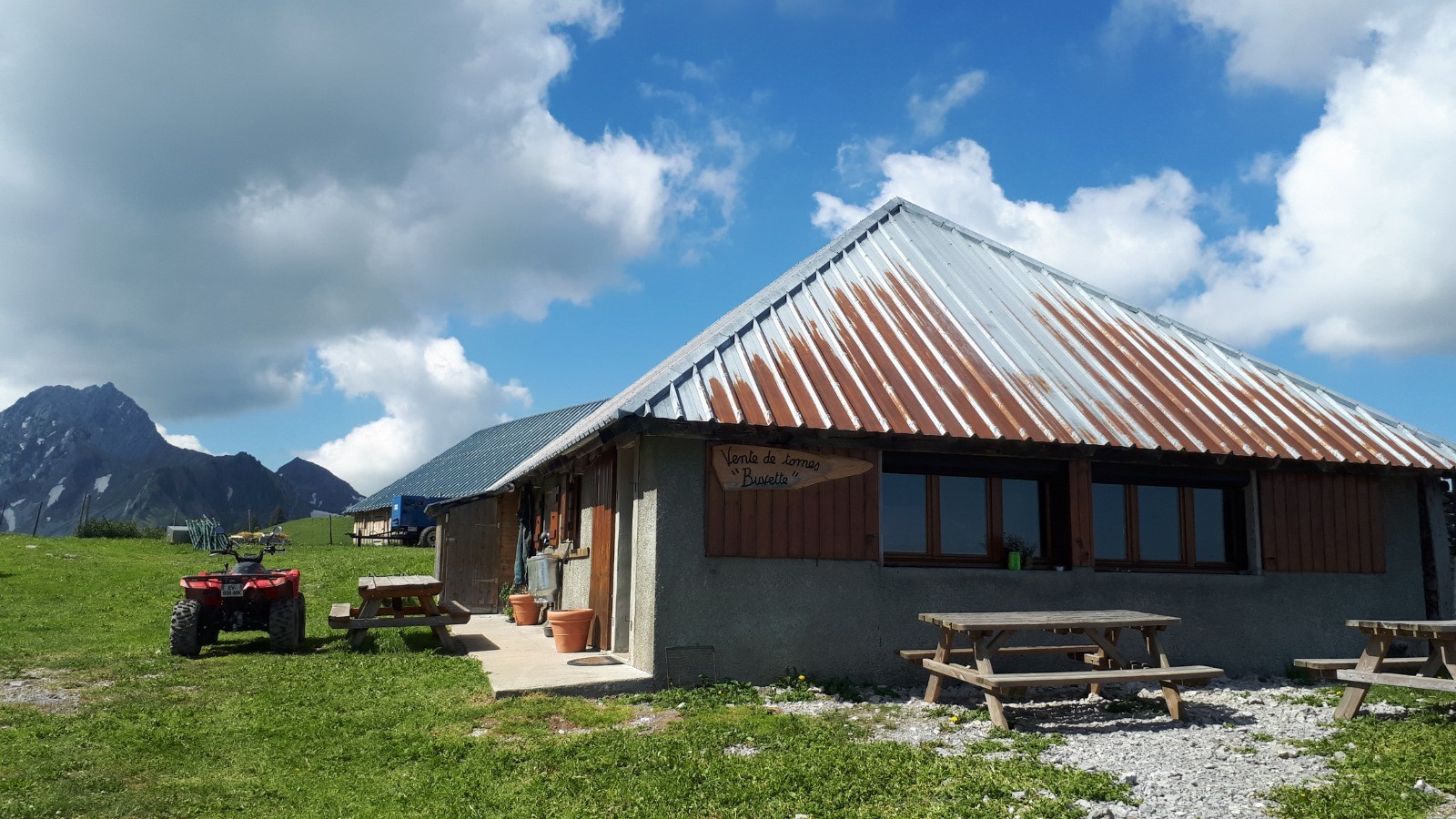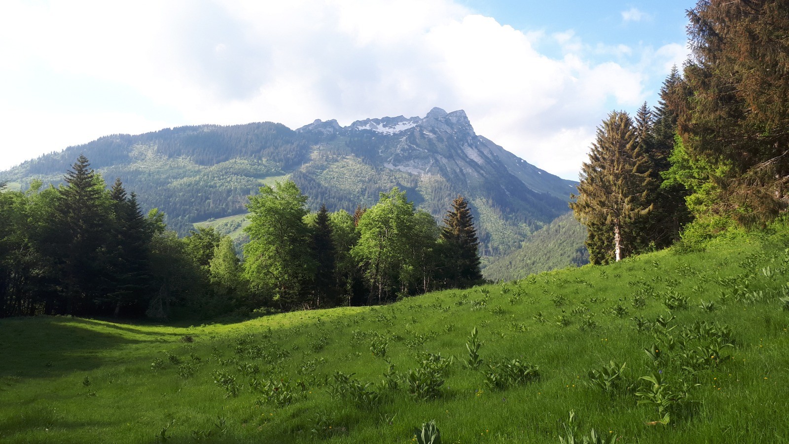Montée : Par le Gros Tilleul (1370m), les chalets de la Servaz (1420m), le chalet des Barbus, les chalets de l'Eau Froide (1620m) et enfin la crête de Vélan.