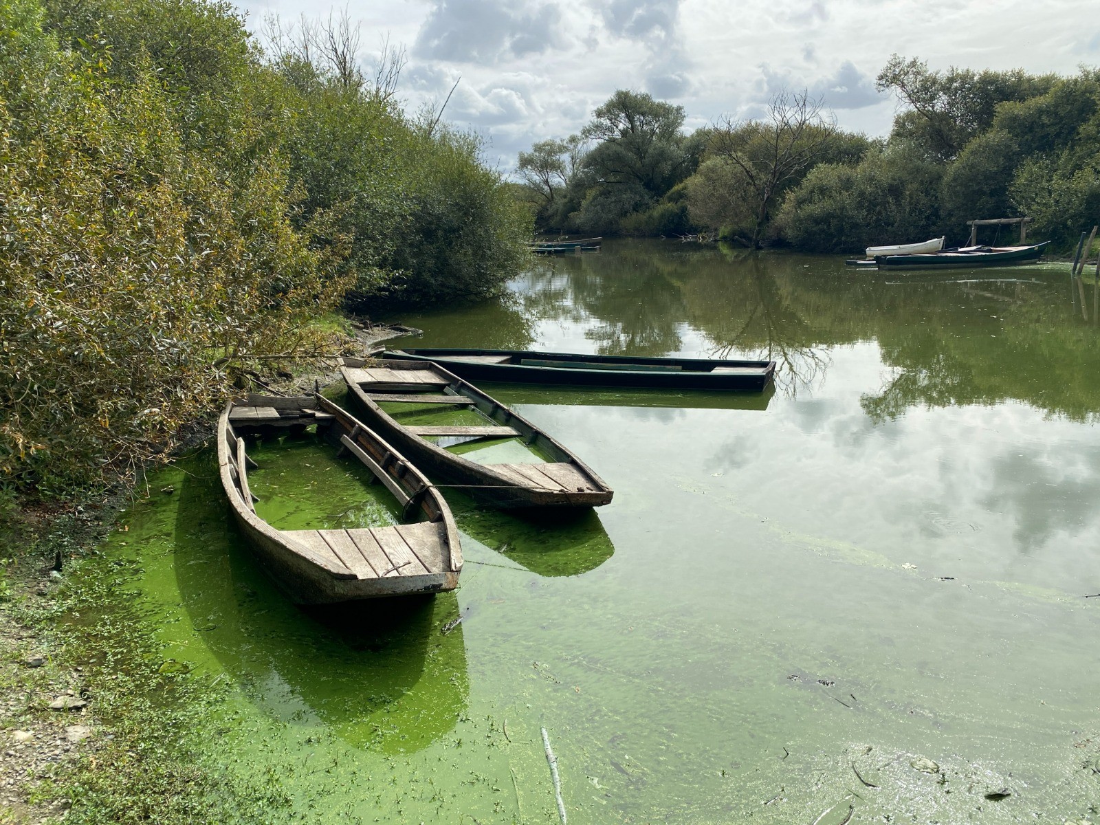 Malgré la présence de quelques bateaux qui flottent encore sur l’eau, le site dégage une impression de solitude et de mélancolie.