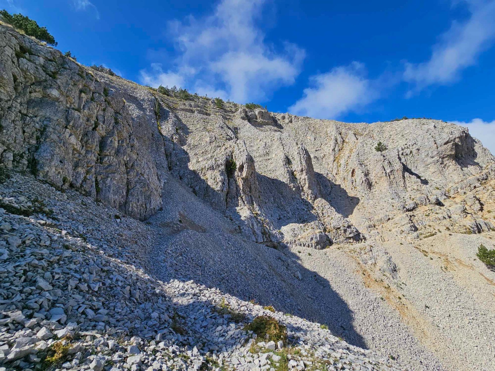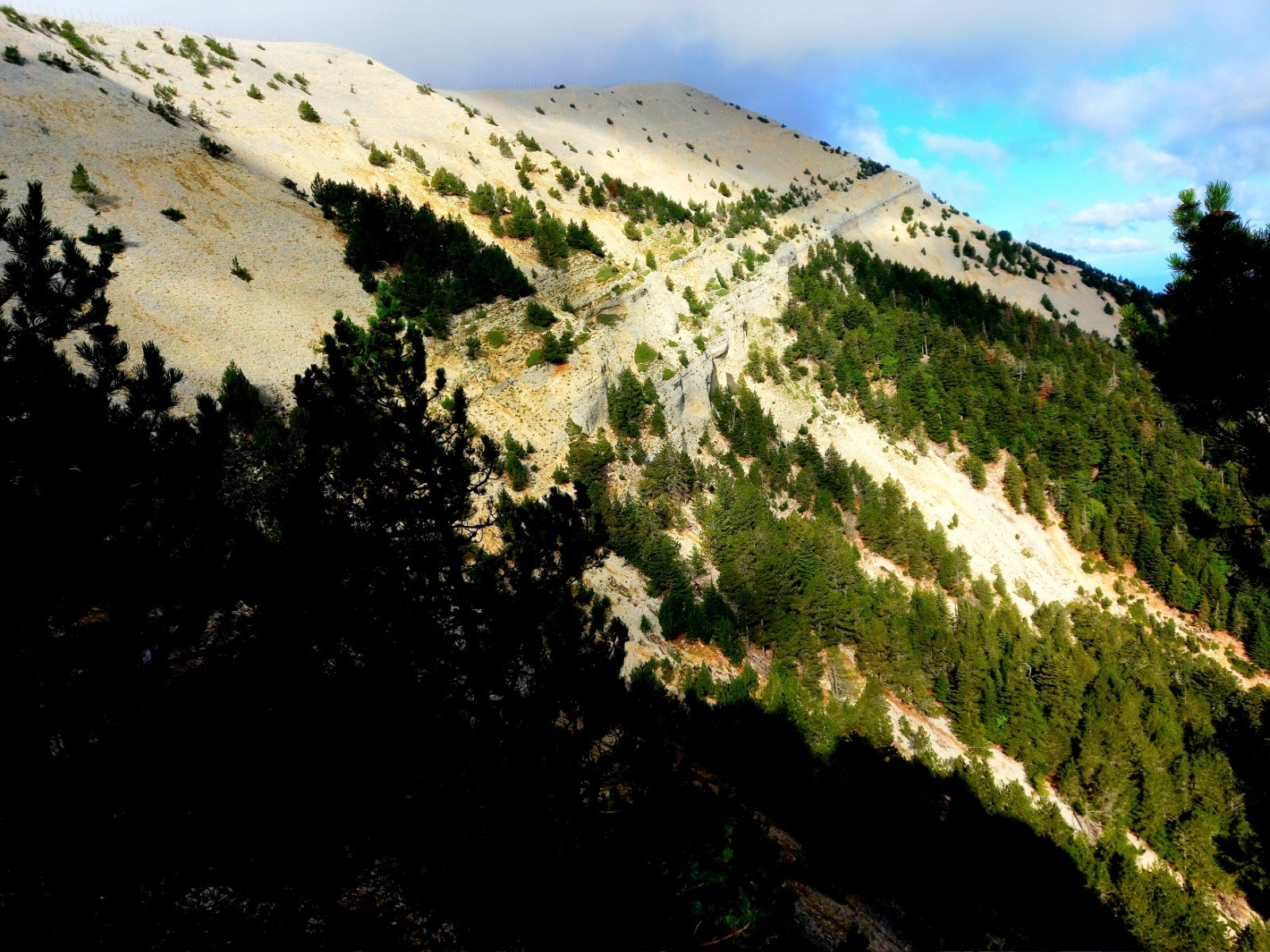 S'en suis une traversée sur une vire de plus de 3,5 km en cote pour passer par la fontaine de Fonfiole. 250m après la source remonter vers la route Une fois la traversée réalisée, la montée vers le sommet n'est pas très longue.