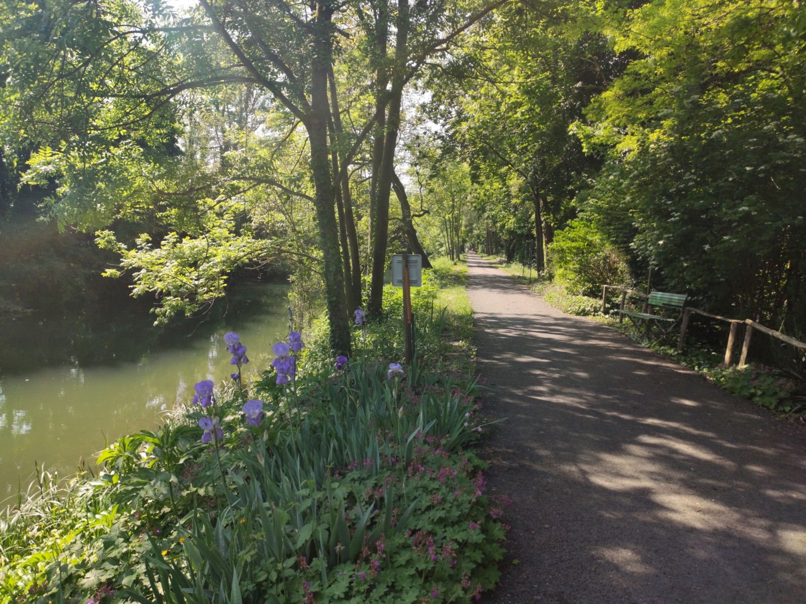 Wittisheim (place de l'Église) - Canal du Rhône au Rhin - Canal de Colmar - D52 - D415 - Breisach am Rhein (D) - Retour par le même itinéraire
