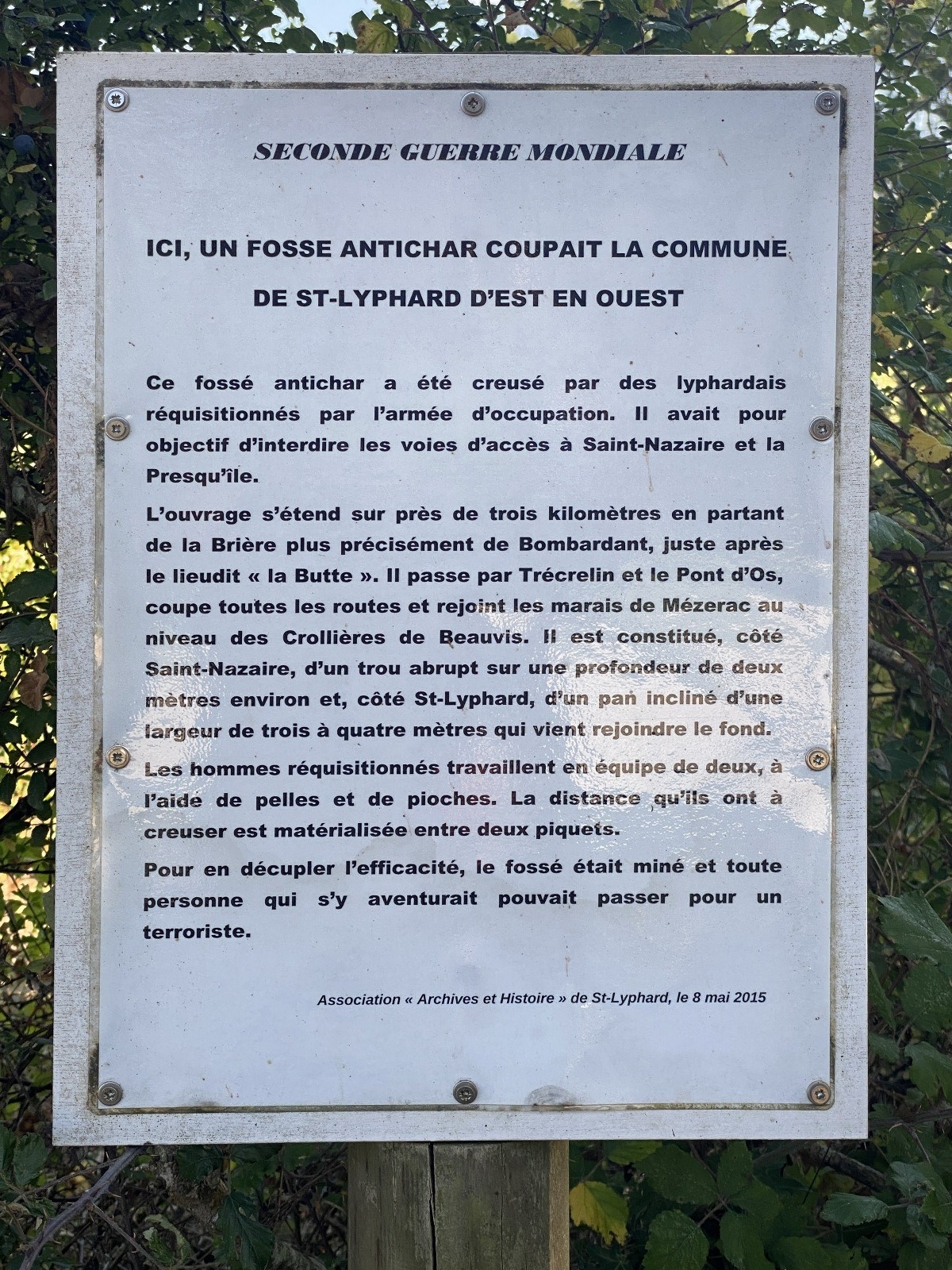 Les grandes fossés antichar : Ces tranchées et talus, creusés par les Allemands pour ralentir une éventuelle avancée alliée, rappellent l’importance stratégique de la région. Compte-rendu : à Saint Lyphard