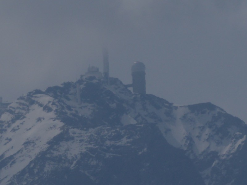Belle journée pour s'élever au dessus de Bagnères de Bigorre. Belle vue sur la Vierge du Bédat. Le Pic du Midi de Bigorre restera caché par les nuages une partie de la journée et se dévoilera ensuite .On peut apercevoir la vallée du Chiroulet avec le déversoir du Lac Bleu et le Bizourtère , le cirque de Peyrelade, le Soum de Hailla, le Montaigu, le Casque du Lhéris...