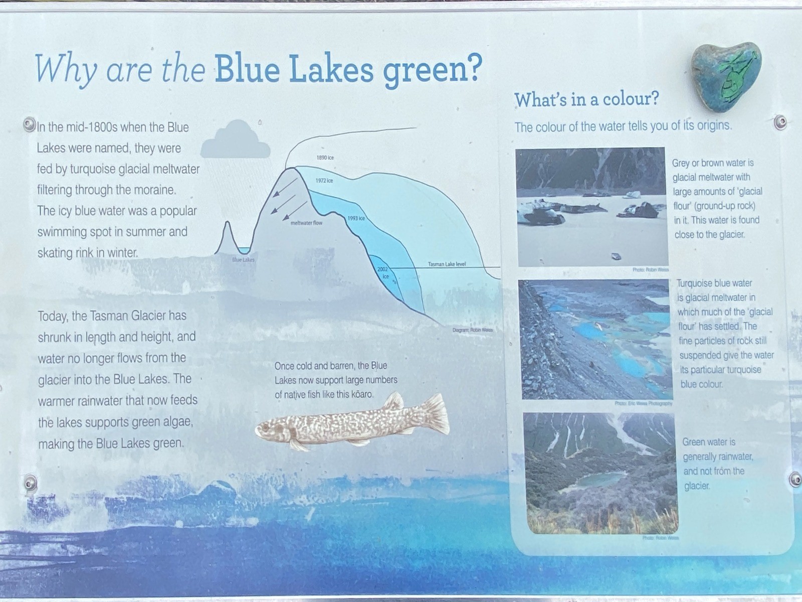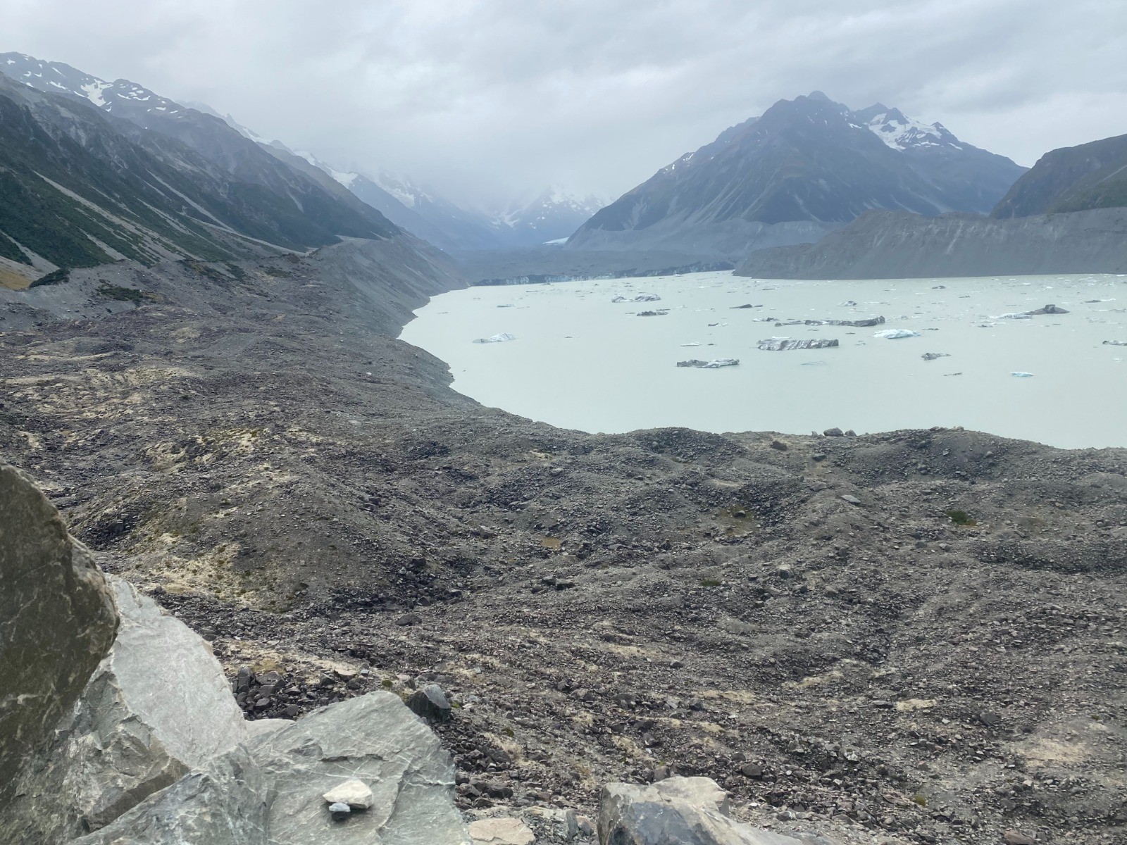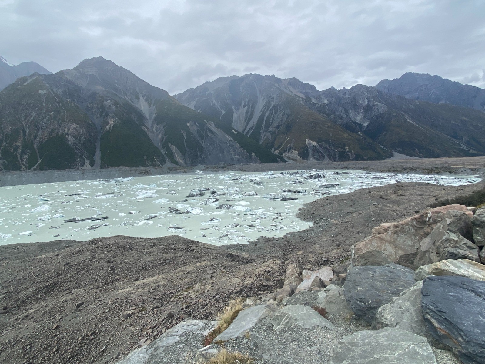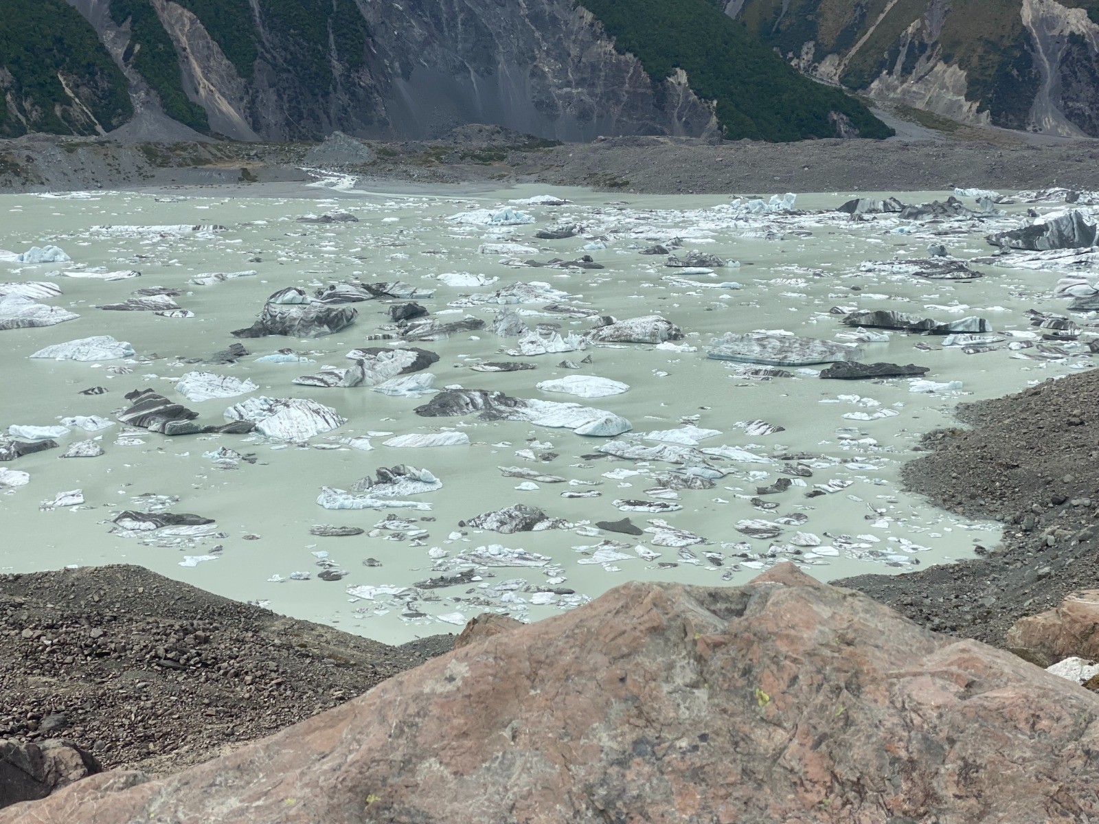 Le lac Tasman est né de la fonte des glaces qui a provoqué en 1974 son apparition à l'extrémité du glacier.