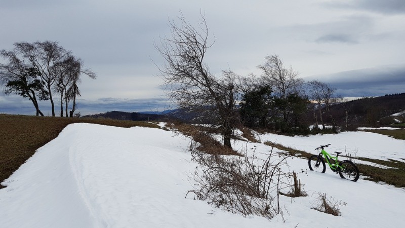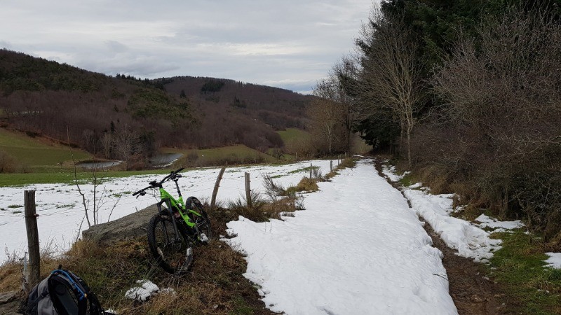 Bouclette archiclassique pour checker le vélo et le bonhomme. Reliquats de congères inroulables. Pas de portage, possiblement de petits poussages.