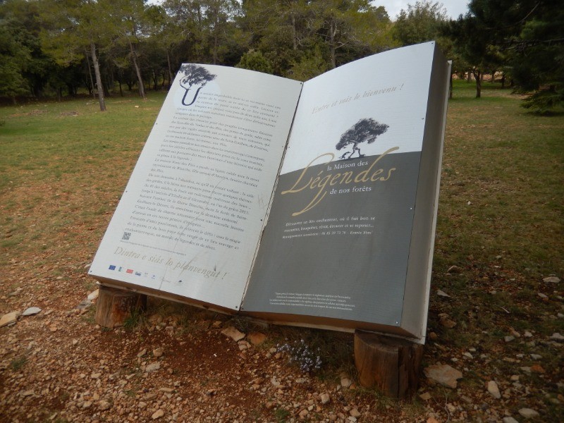 De la D4, 1 km avant le village, monter dans les cailloux par la grotte de Brunon et le sentier botanique jusqu'au superbe site de la maison forestière des Plos.