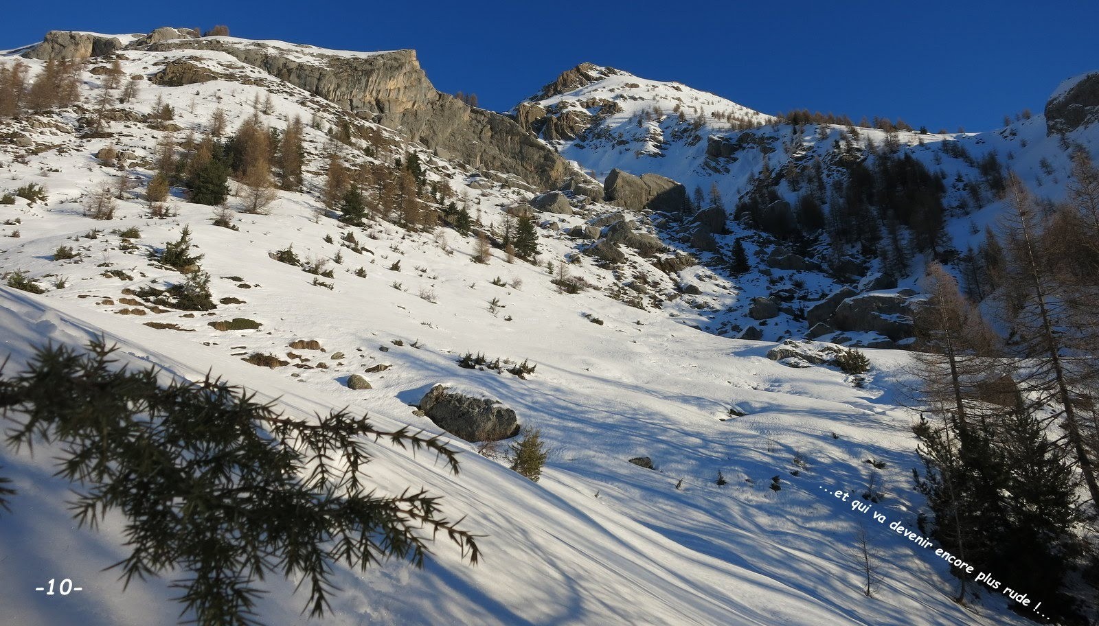 du sentier d'été qu'il suffit de couper au plus facile jusqu'à proximité de la barre rocheuse en restant le plus possible