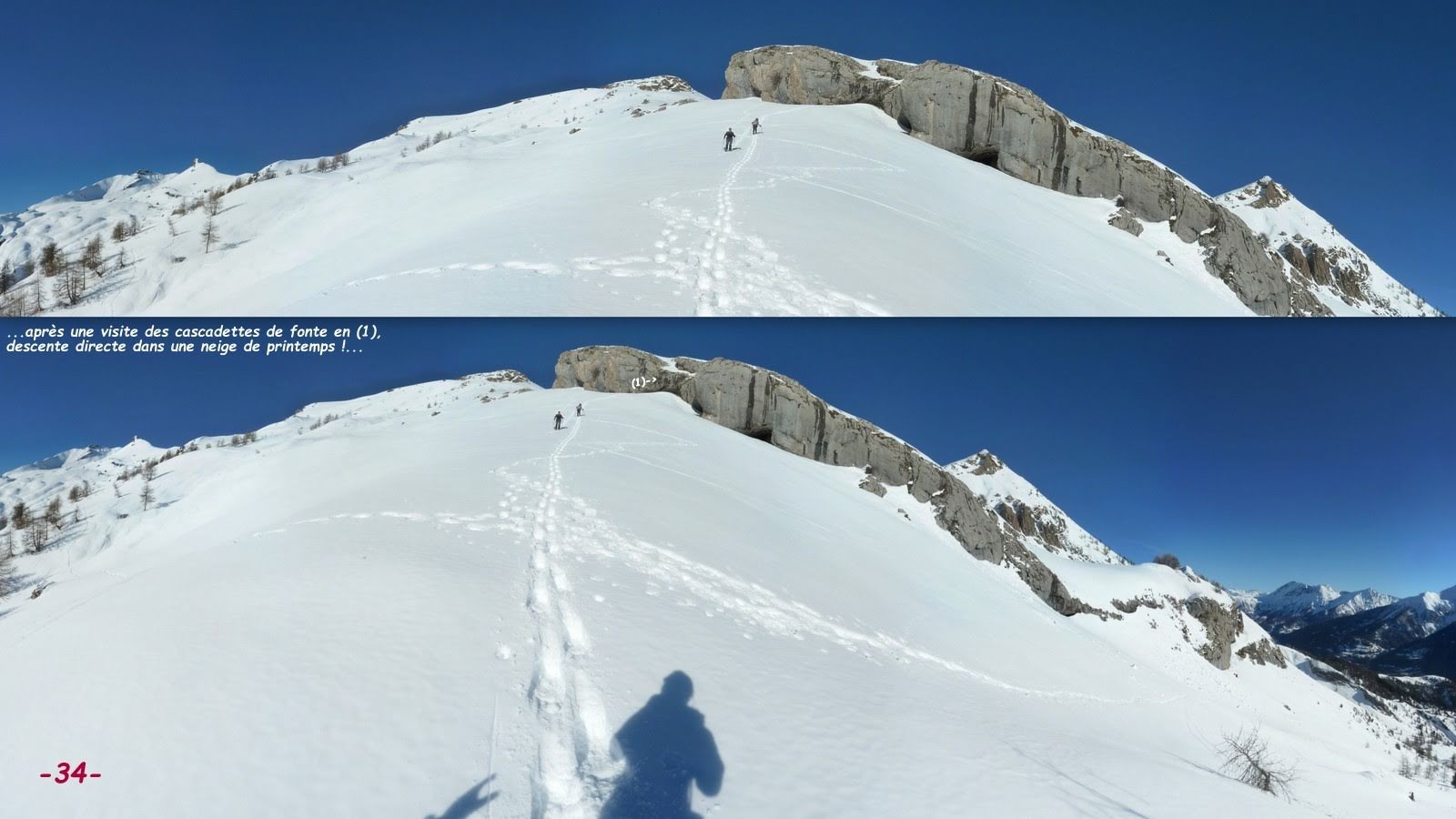 retourner sur notre trace de montée > retour grosso modo par le même itinéraire à 2 variantes de confort près.