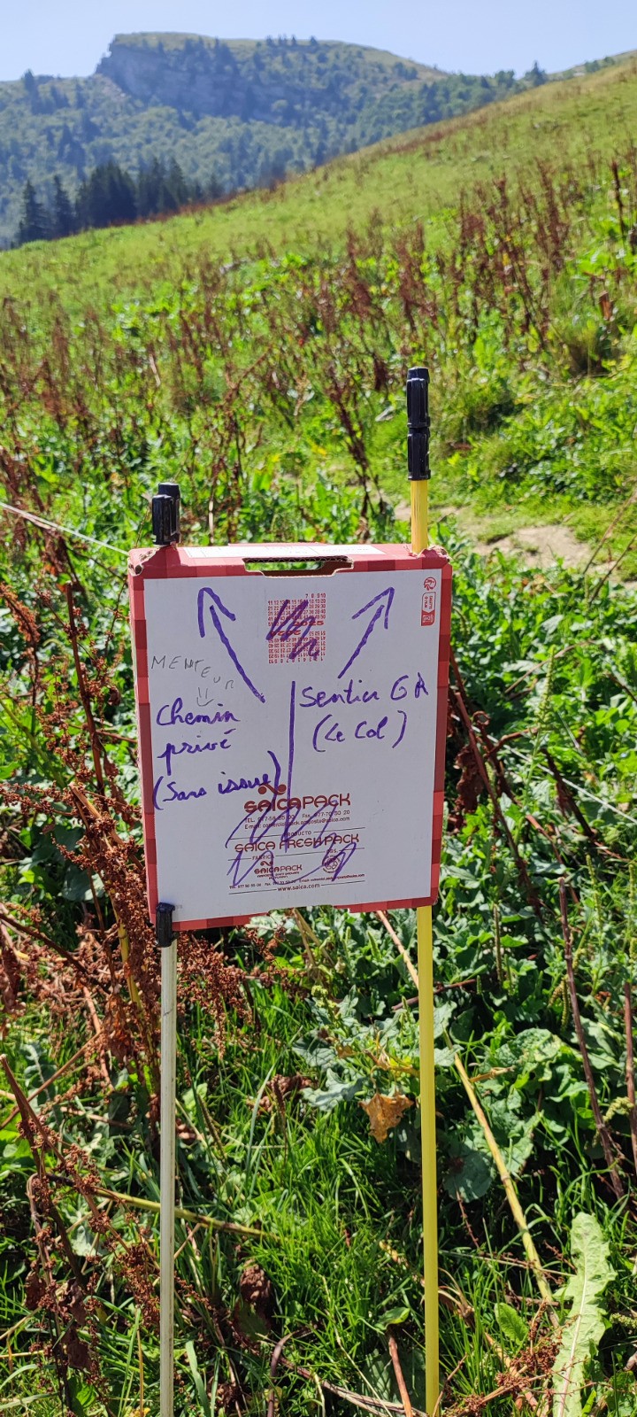 Au bout de 2km à partir du parking, bien prendre à gauche au croisement (suivre le fléchage VTT). Vous trouverez des panneaux directionnels régulièrement indiquant le Col de l’Arclusaz.
