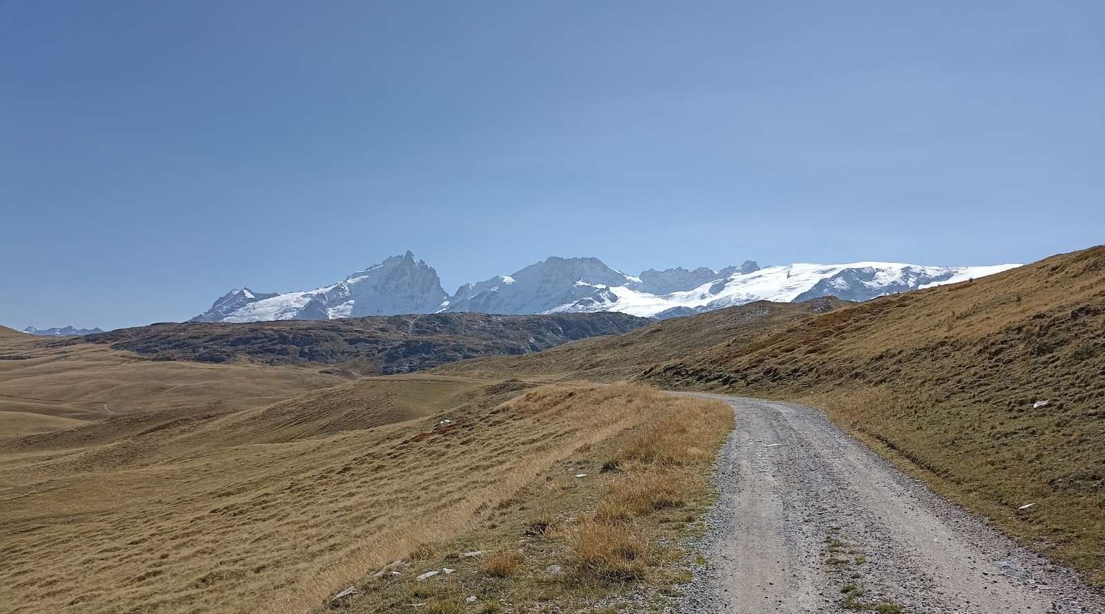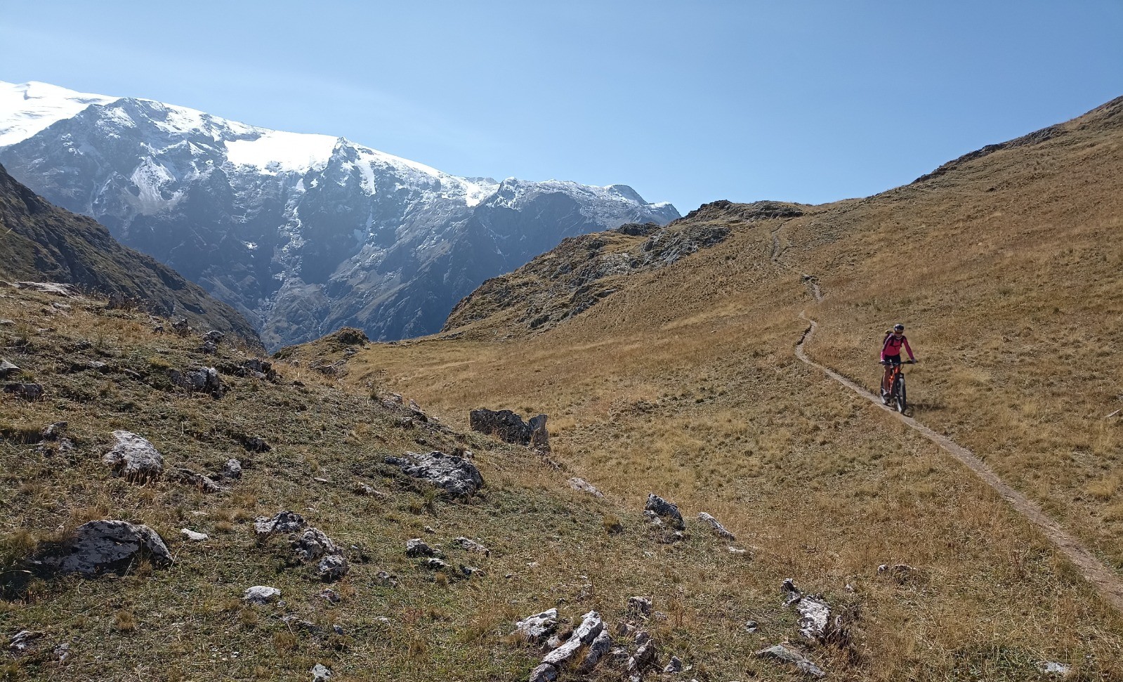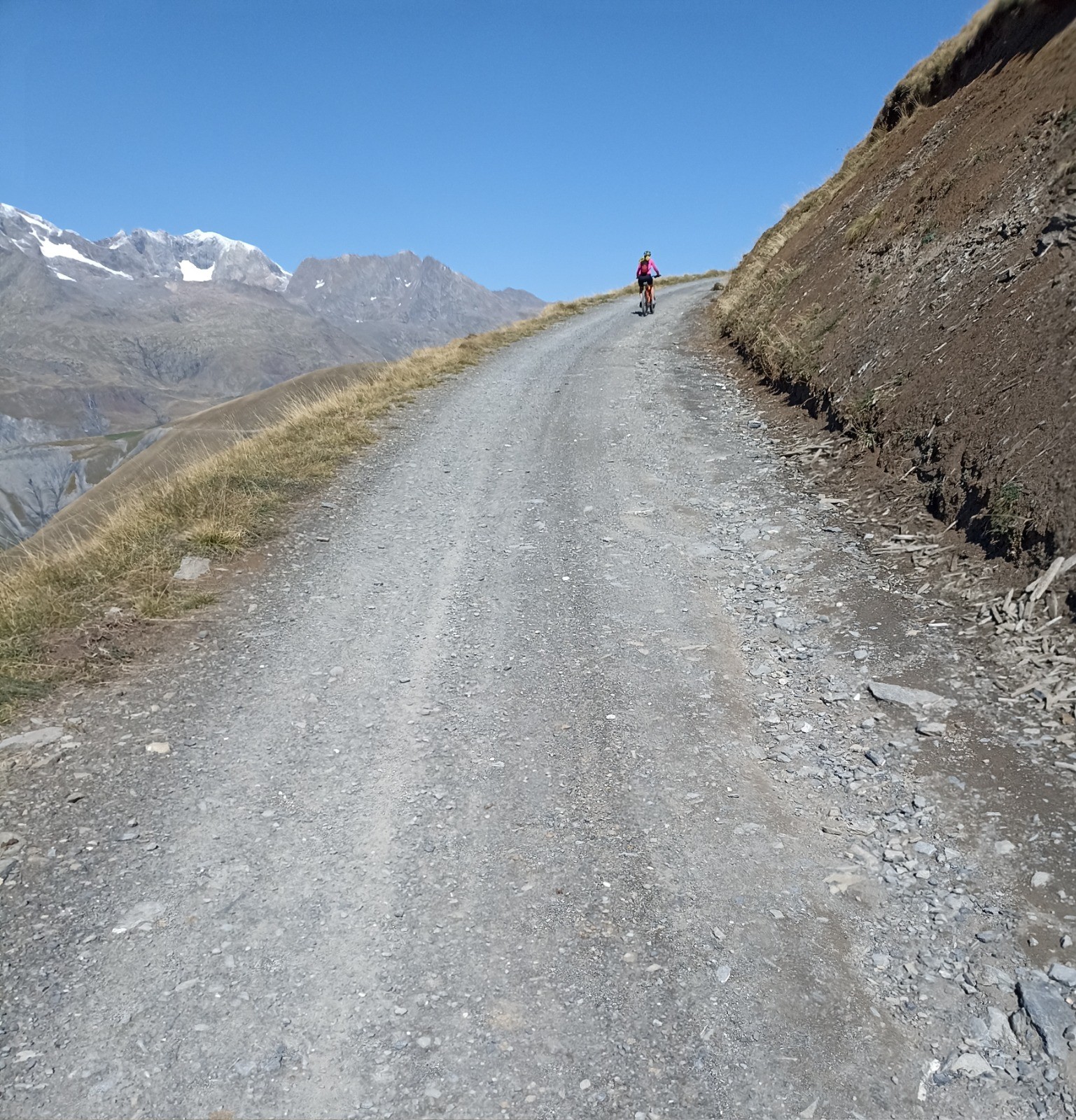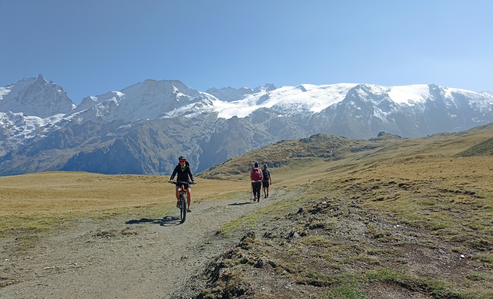 Monter par la piste sur environs 8Kms menant au parking a l'entrée du plateau. De la, vous effectuer le tour du plateau en passant par divers chemins allant de la piste au single. Des points de vue a couper le souffle avec notamment en toile de fond, la Meige et les glaciers de la Girose et du Rateau. Pour le retour. 2 options. Soit faire la descente par la piste de monter ou prendre le chemin de rando qui serpente bien dans le talus. Attention. Cet itinéraire est exposé. Pente raide et virages serrés.
