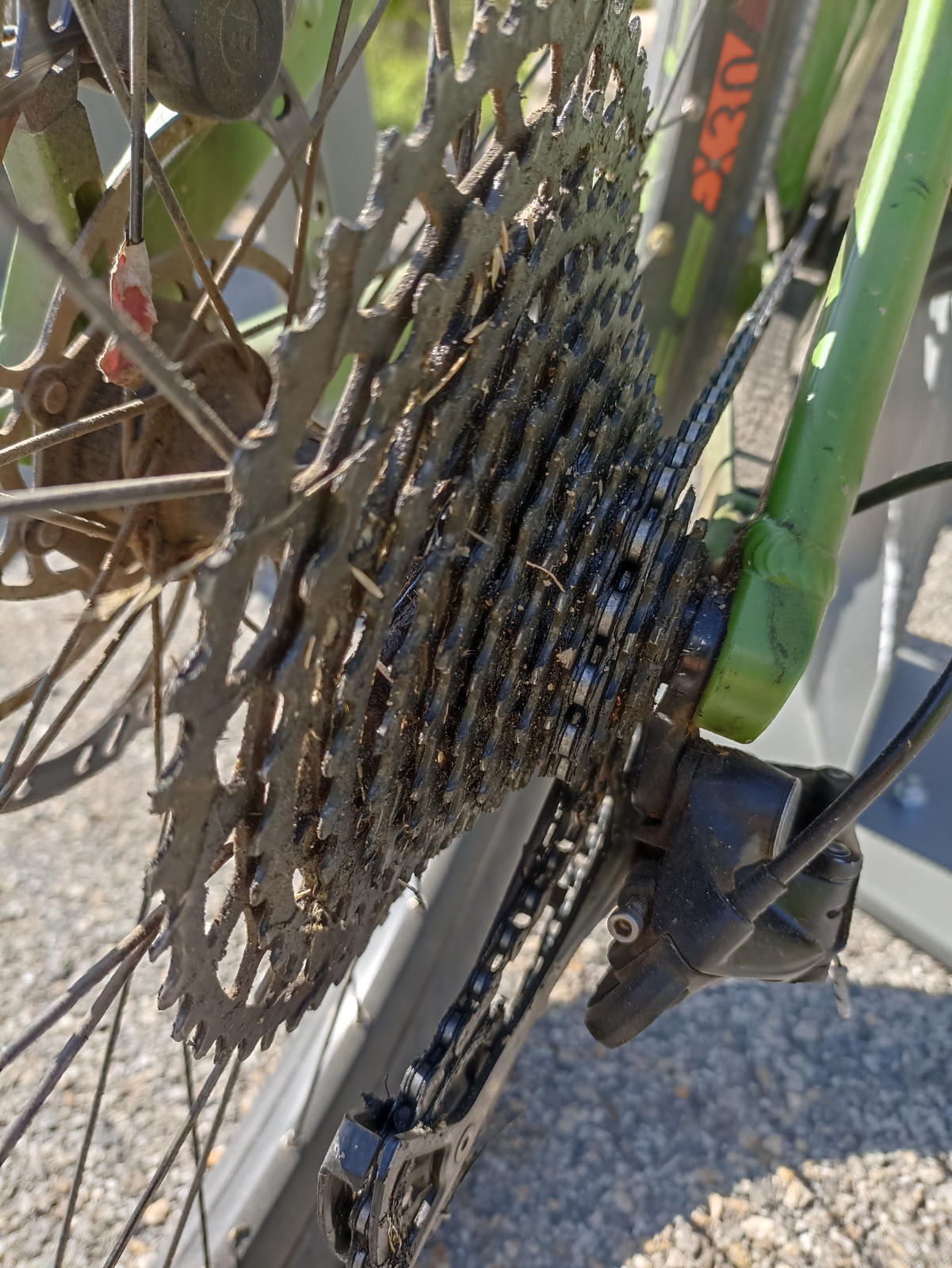 Malheureusement un problème technique nous a obliger de raccourcir le parcourt. Mon dérailleur c'est tordue et la patte de fixation c'est fendue. oblige de rentrer tranquillement pour nr pas rompre la patte et devoir démonter la chaine pour laisser libre la roue. Heureusement elle a résistée jusqu'a la voiture.
