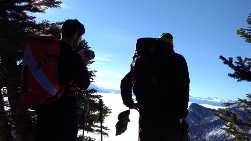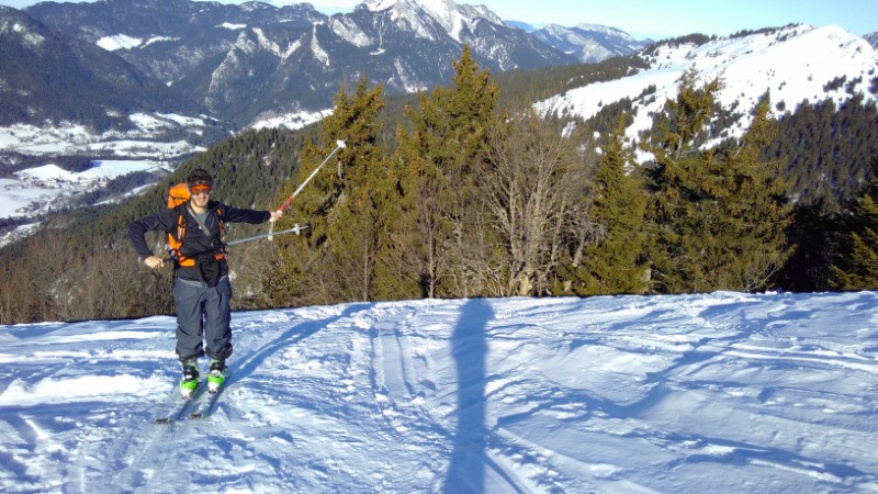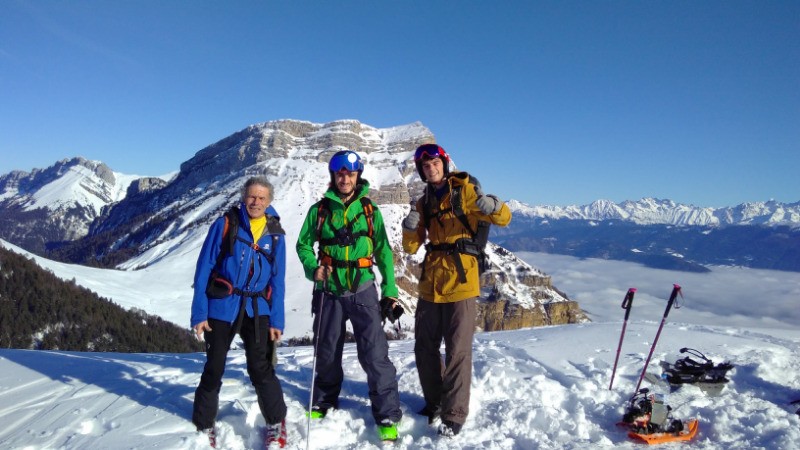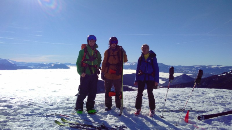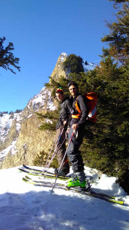 En ce réveillon de Noël 2017, après moult chutes de neige et la grisaille dans la vallée, nous décidons de retourner au Bec Charvet si bon à skier il y a 15 jours. Début de rando avec les Pierre-Luc Gaëlle et le filles sur la route. Mais les conditions n'ont rien à voir avec la ballade précédente. Théotime étrenne son SPLITSURF et la montée n'est pas simple dans une forêt serrée et raide. Arrivée au sommet magnifique car au-dessus de la grisaille le soleil est radieux. La descente par contre est cata, malgré l'expo nord, la descente est gelée. Très dur à skier dans les arbres. Une avalanche s'est faite entendre en face dans la dent de Crolles.