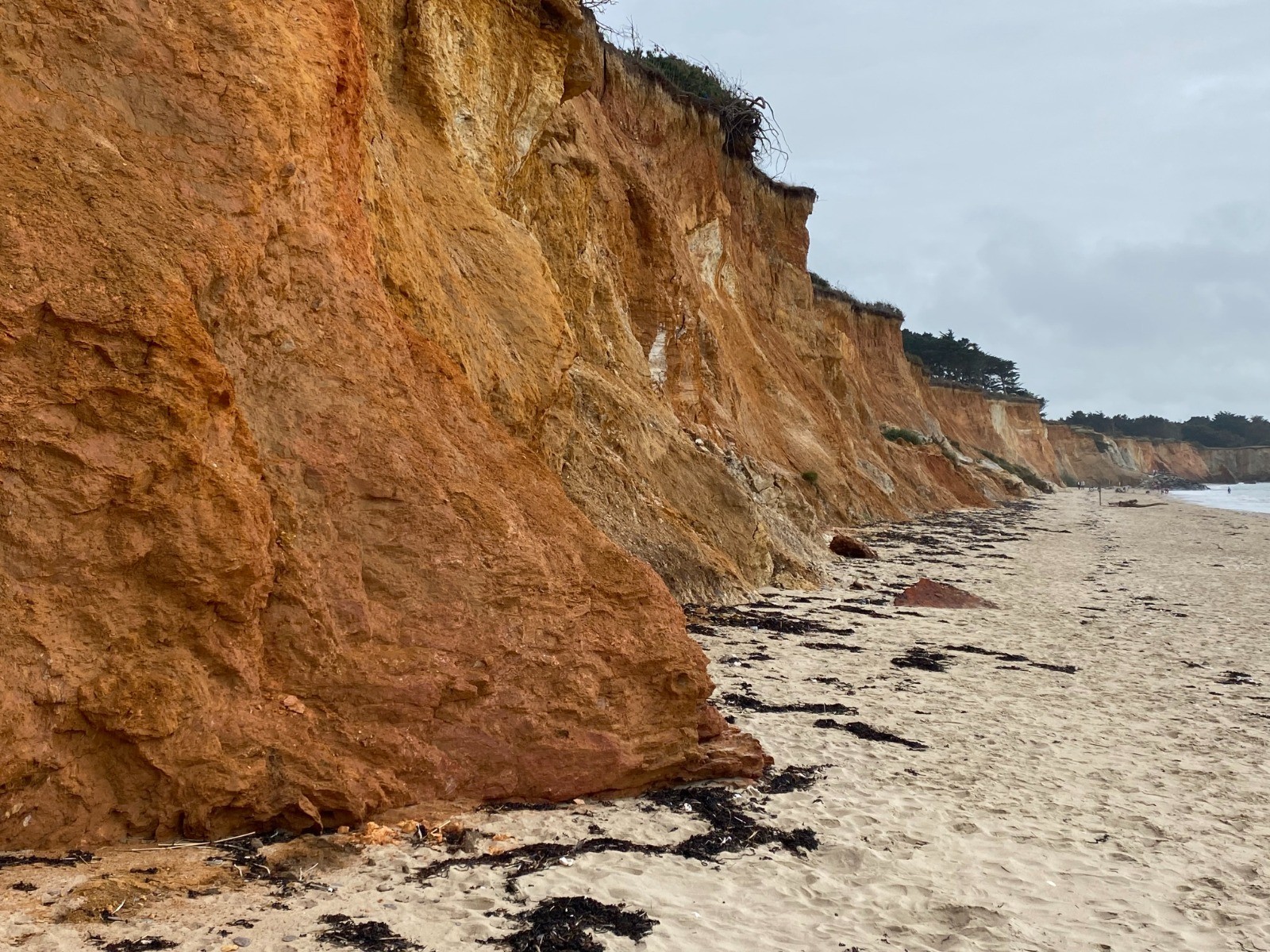 Une haute falaise aux dégradés ocres dominant la mer…