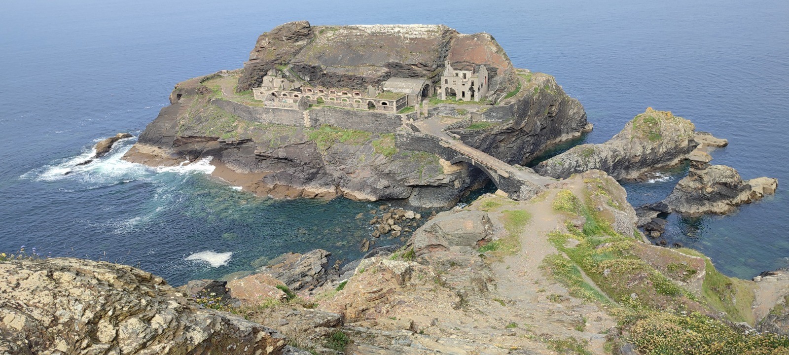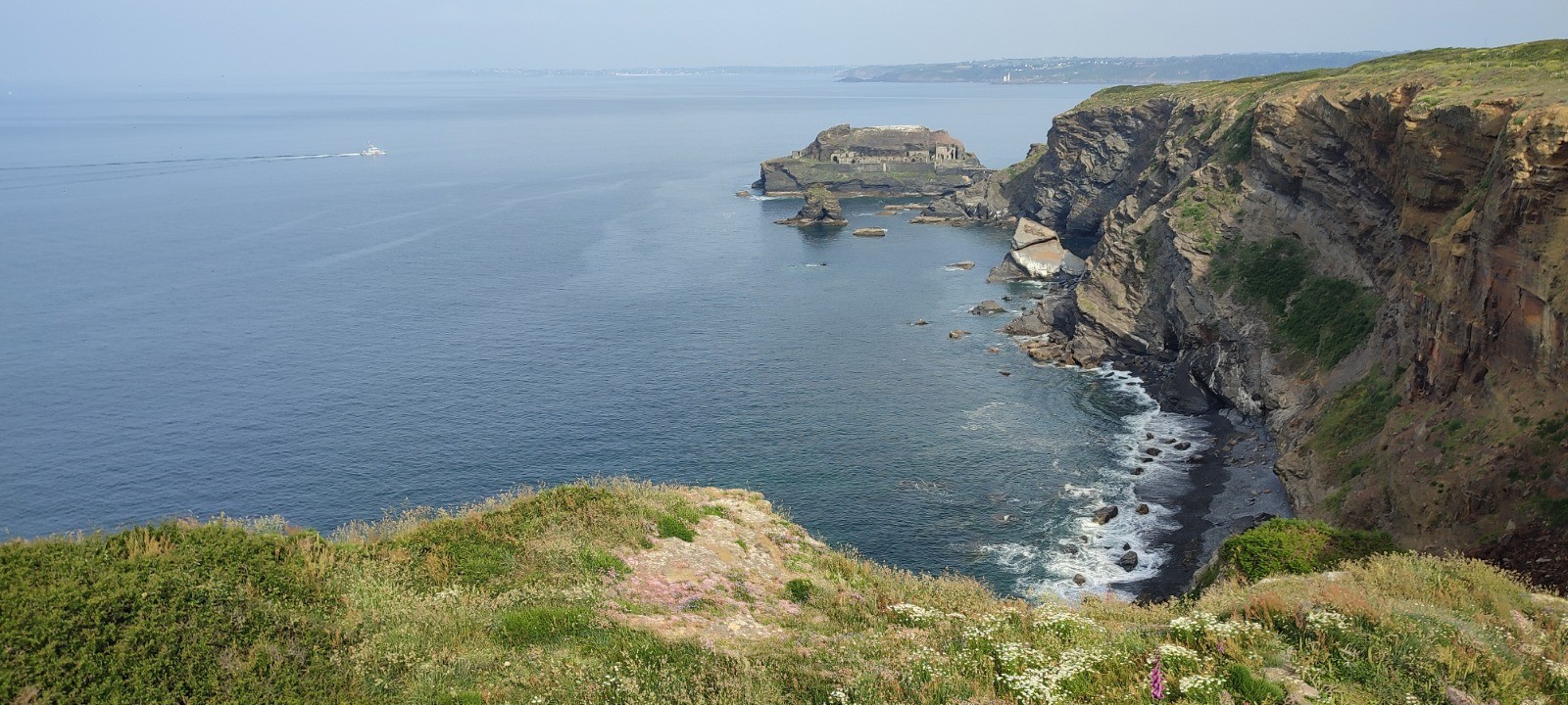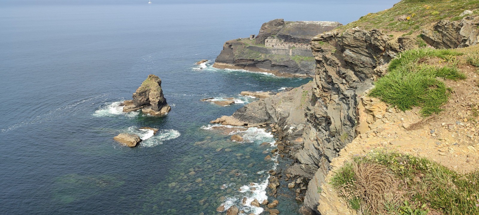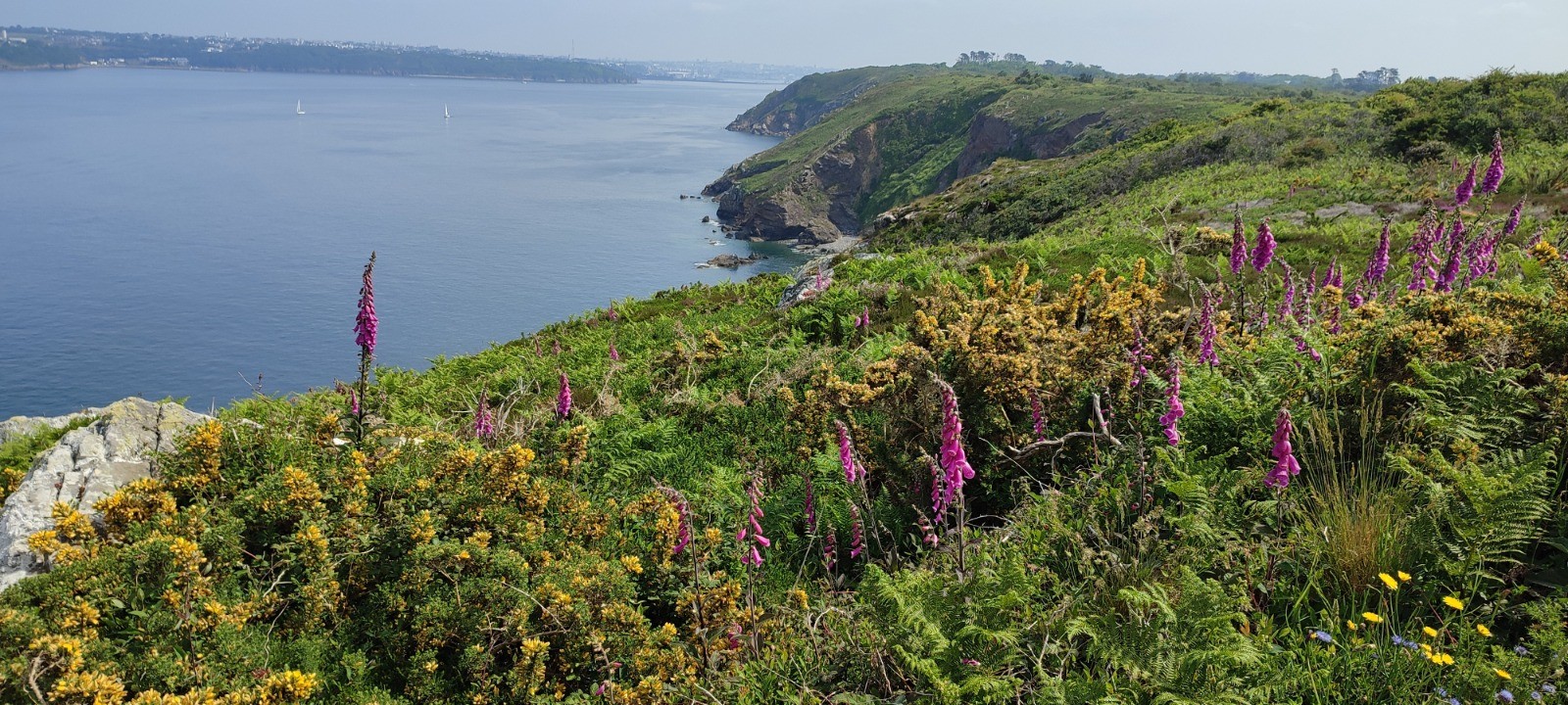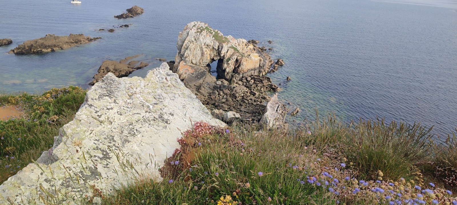 Bonne marche efficace en début de matinée. Nous arrivons à la pointe des Capucins (conseillée par les deux jeunes qui nous avaient pris en stop deux jours avant) sans s'en apercevoir. Je n'ai pas oser aller sur l'îlot, comme ils nous l'avaient dit. Bon j'ai eu tort me dira aussi notre logeuse du soir. Il y avait un sentier d'accès moins raide.