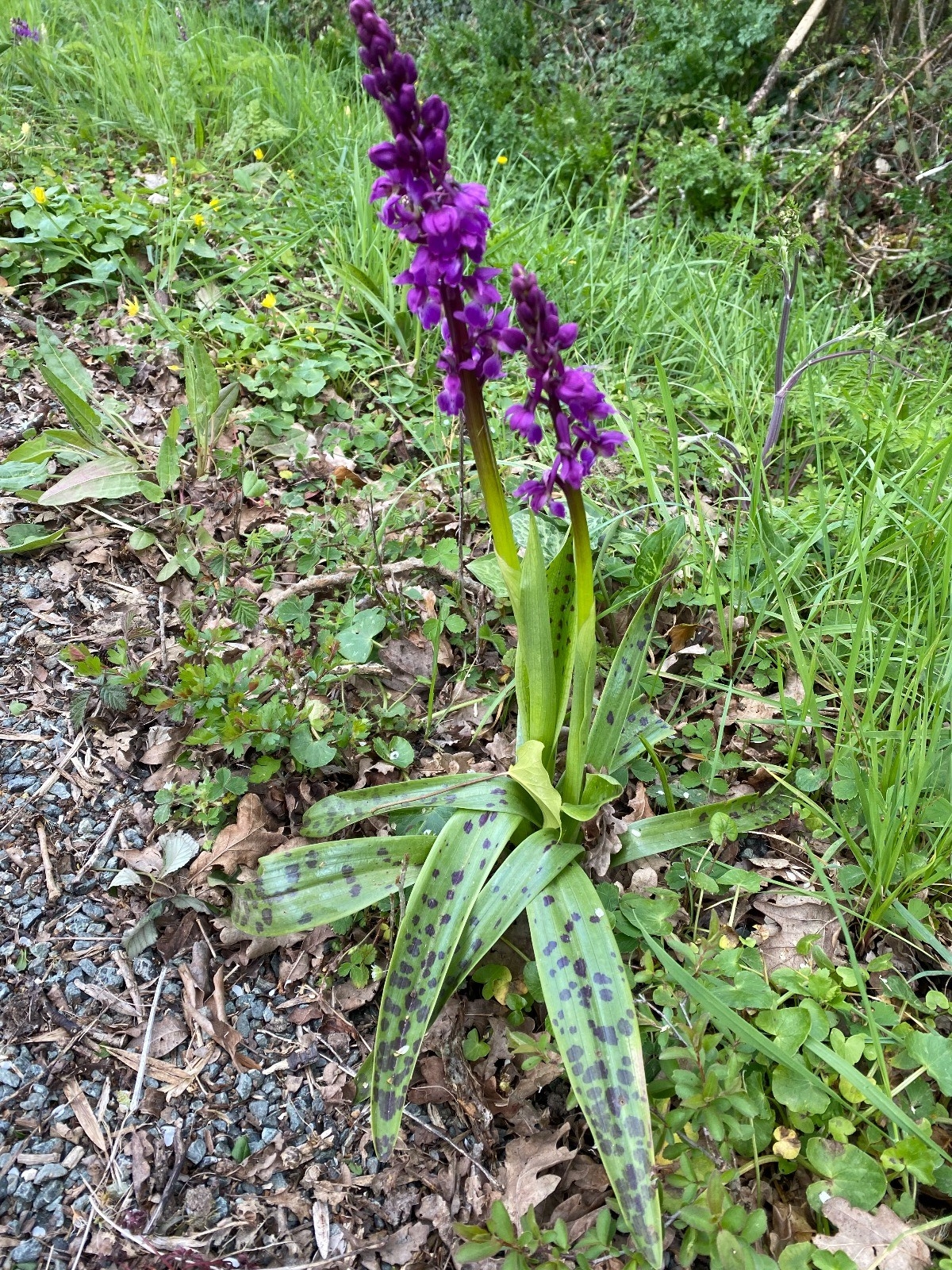 Les accotements sont tapissés d'orchis mâle ( photo no 18 ) et de pissenlits qui profitent des rayons de soleil pour nous montrer leur belle parure jaune..