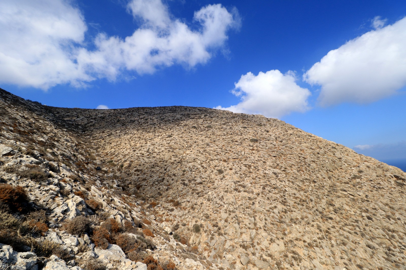 Panagia Katefiani blottie en face SW des falaises sous le Mesa Vouno (