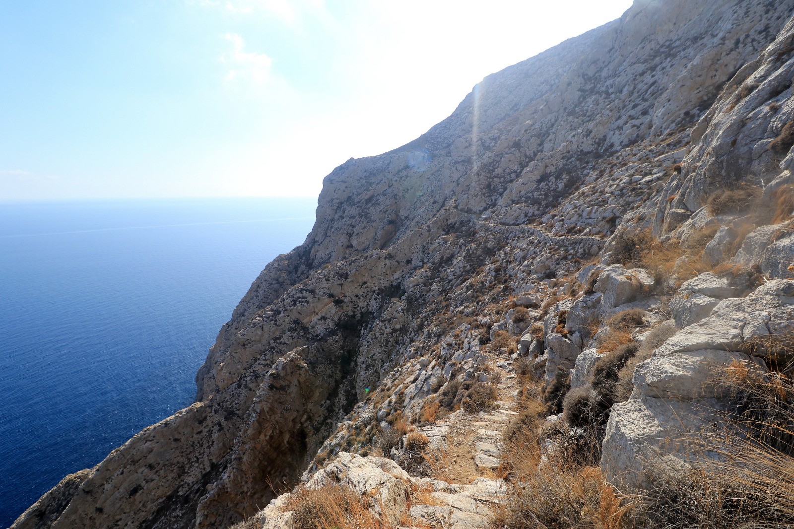 Depuis la chapelle, un sentier bien dessiné rejoint le site de Thera (