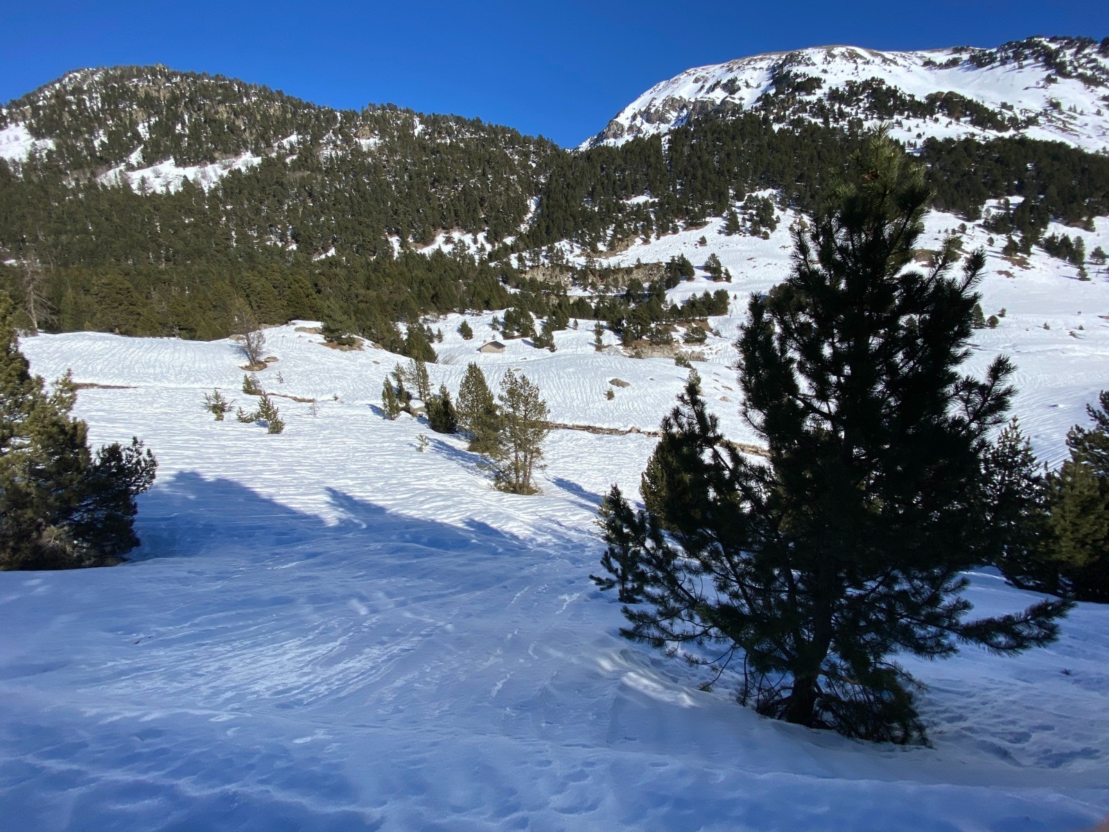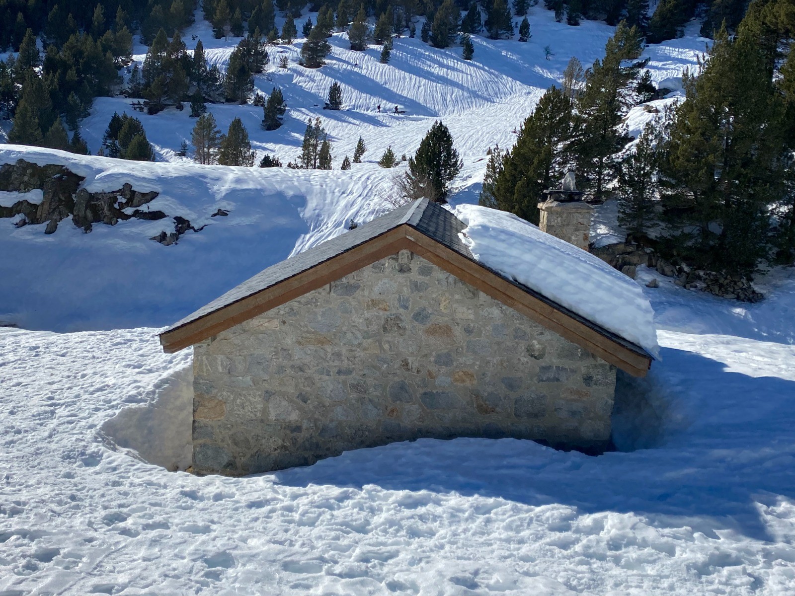 Actuellement la piste enneigée a été bien damée par les randonneurs précédents et ne nécessite pas des raquettes.