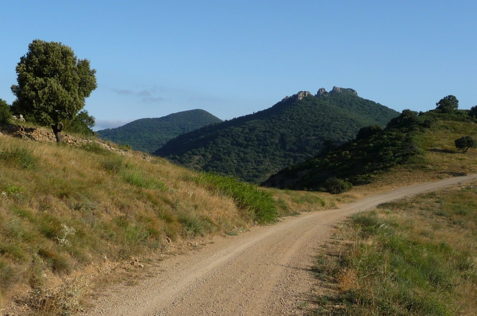 Au départ de St Saturnin de Lucian, une agréable rando dans les chênes vert sans grande difficulté, jusqu'au Roc des deux Vierges, avec un final au milieu des vignes.