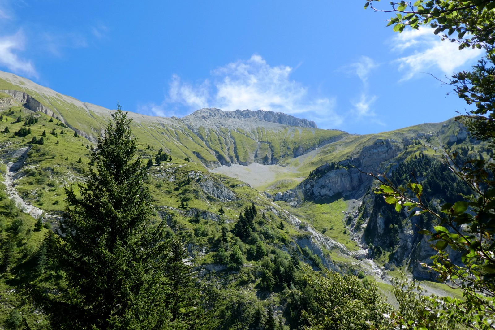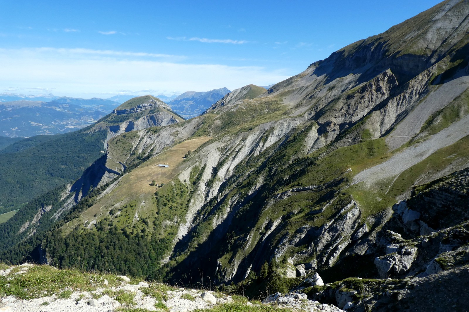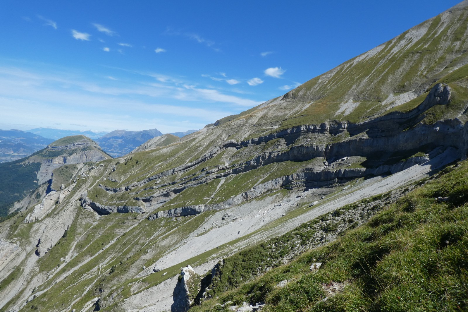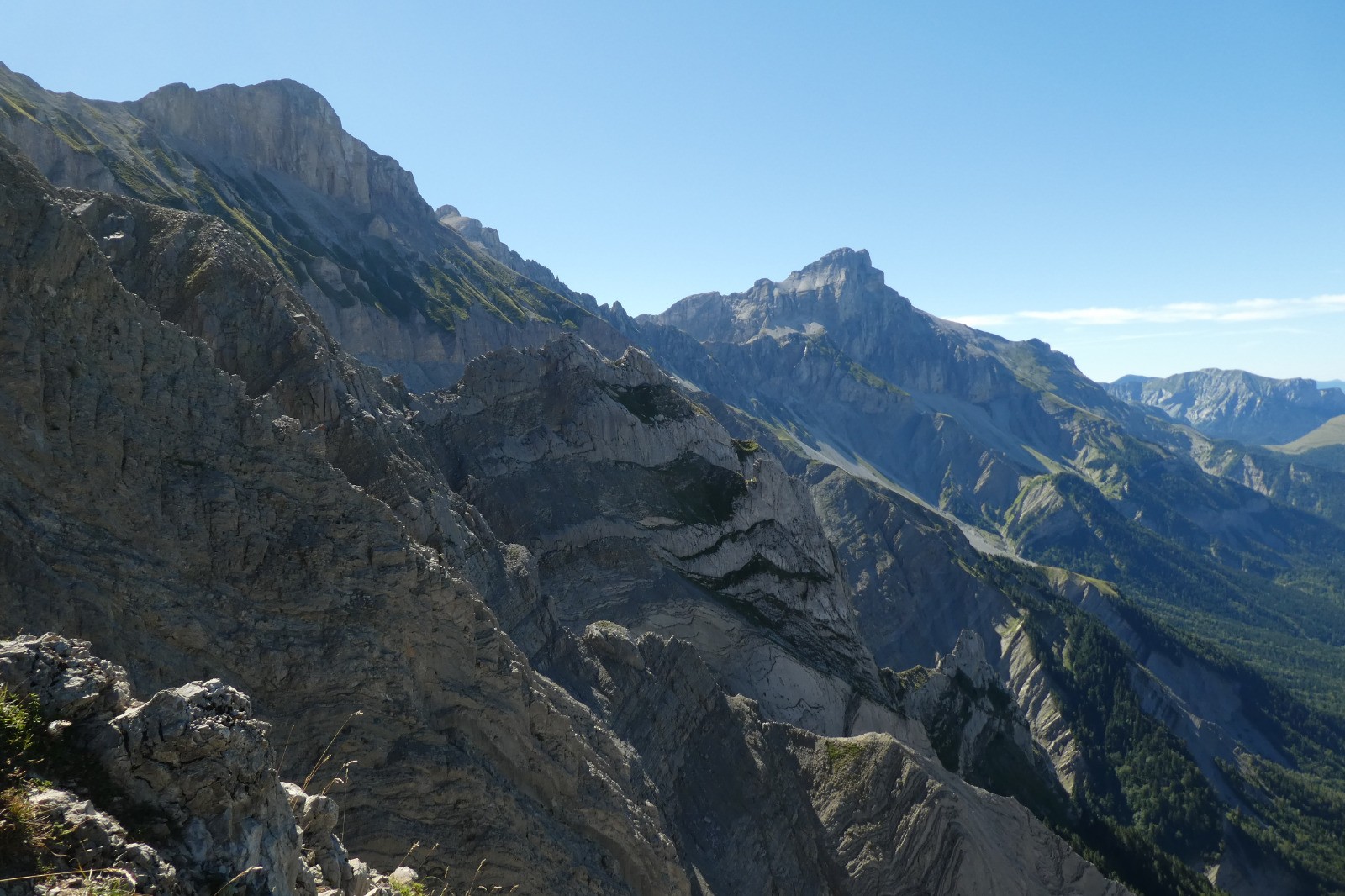 Un sentier panoramique, parfois taillé en corniche, permet de passer astucieusement entre de belles lames rocheuses.