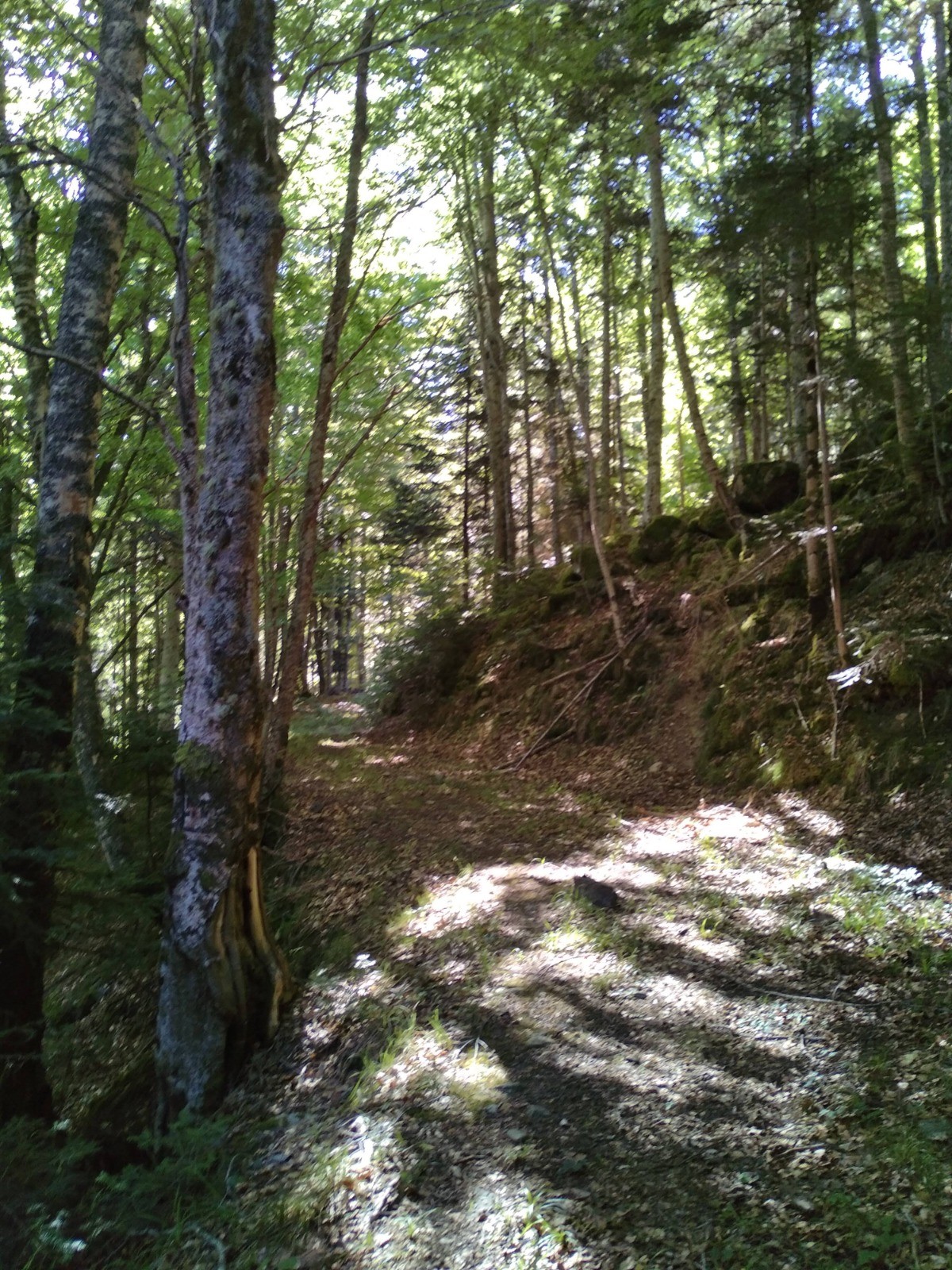 C'est une belle trace large à l'ombre de grands arbres majestueux mais peu connue. Plus sauvage, il n'y a pas.