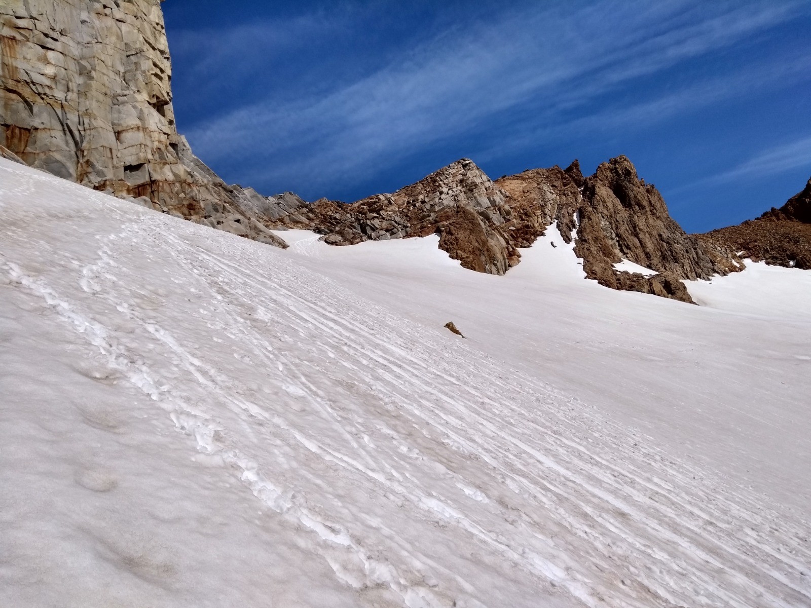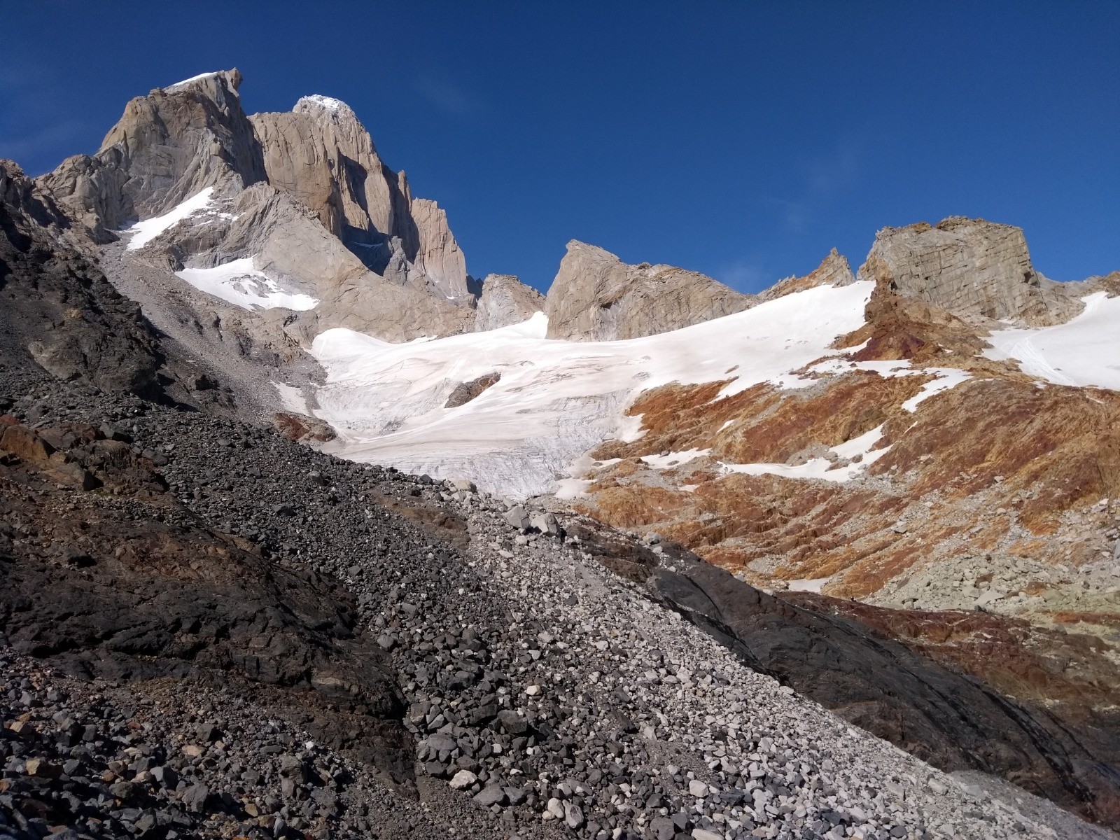 Passage sur un glacier pour accéder au Paso del Cuardrado.