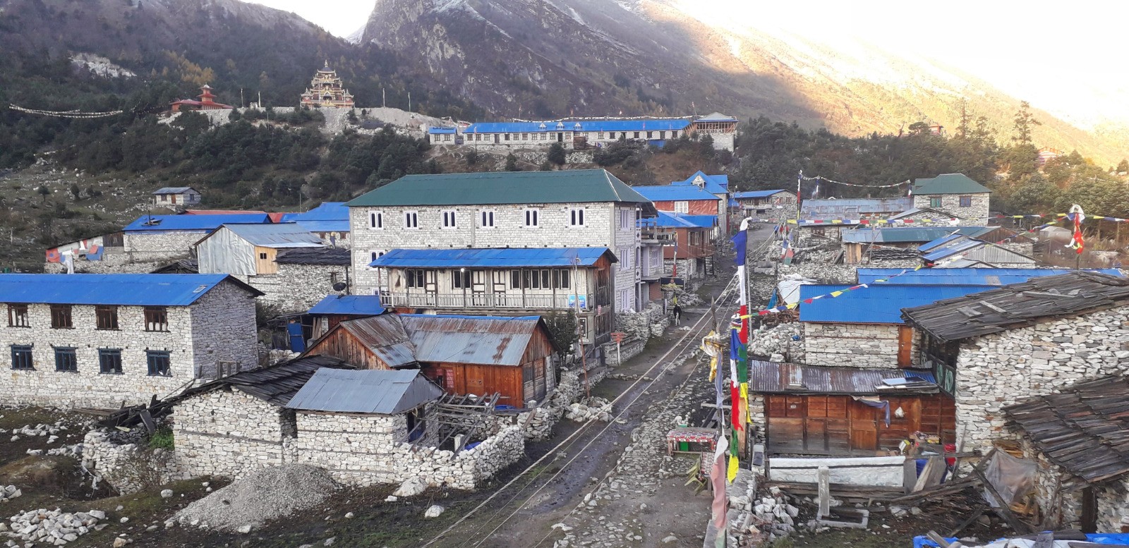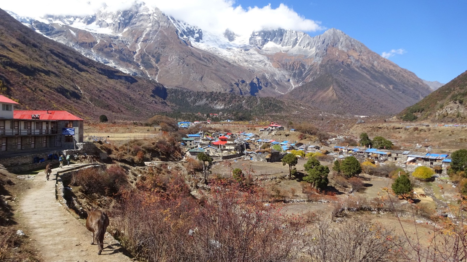 Un grand village, ce qui surprend un peu étant donné que tout ce qui est ici est transporté par des bêtes de somme depuis la vallée, de la nourriture pour les touristes jusqu'aux matériaux de construction pour les nombreux logements du village.