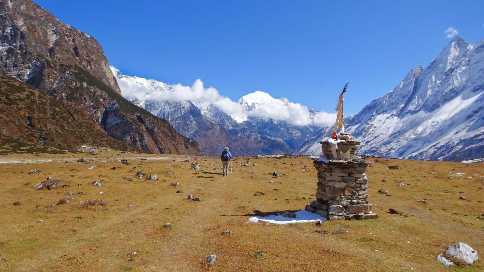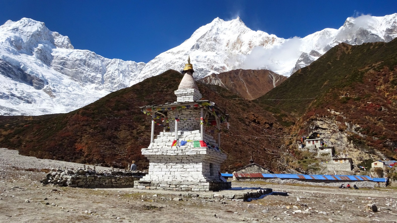 Aujourd'hui c'est la journée la plus impressionnante du trek et du circuit du Manalu, la visite de Pung Gyen Gompa, un monastère bouddhiste situé dans un lieu impensable, un immense plateau à plus de 4000 mètres, au pied du sommet du Manalu (8163 m) entouré d’autres colosses comme l’Himal Chuli (7893 m) et ses crêtes (de 7200 à 7800 m).
