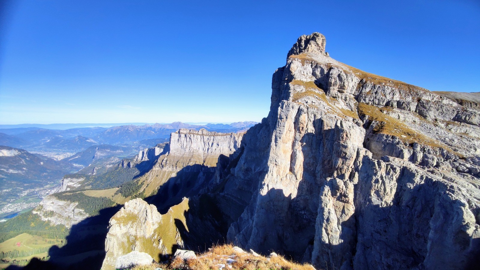 Montée : dans les bois jusqu'aux Chalets de Varan 1610m, puis remontée la raide combe du Vellard jusqu'au Col de Barberousse 2260m et suivre les points rouges qui nous amènent au pied de l'Aiguille. Deux cheminées à franchir et le sommet est là.