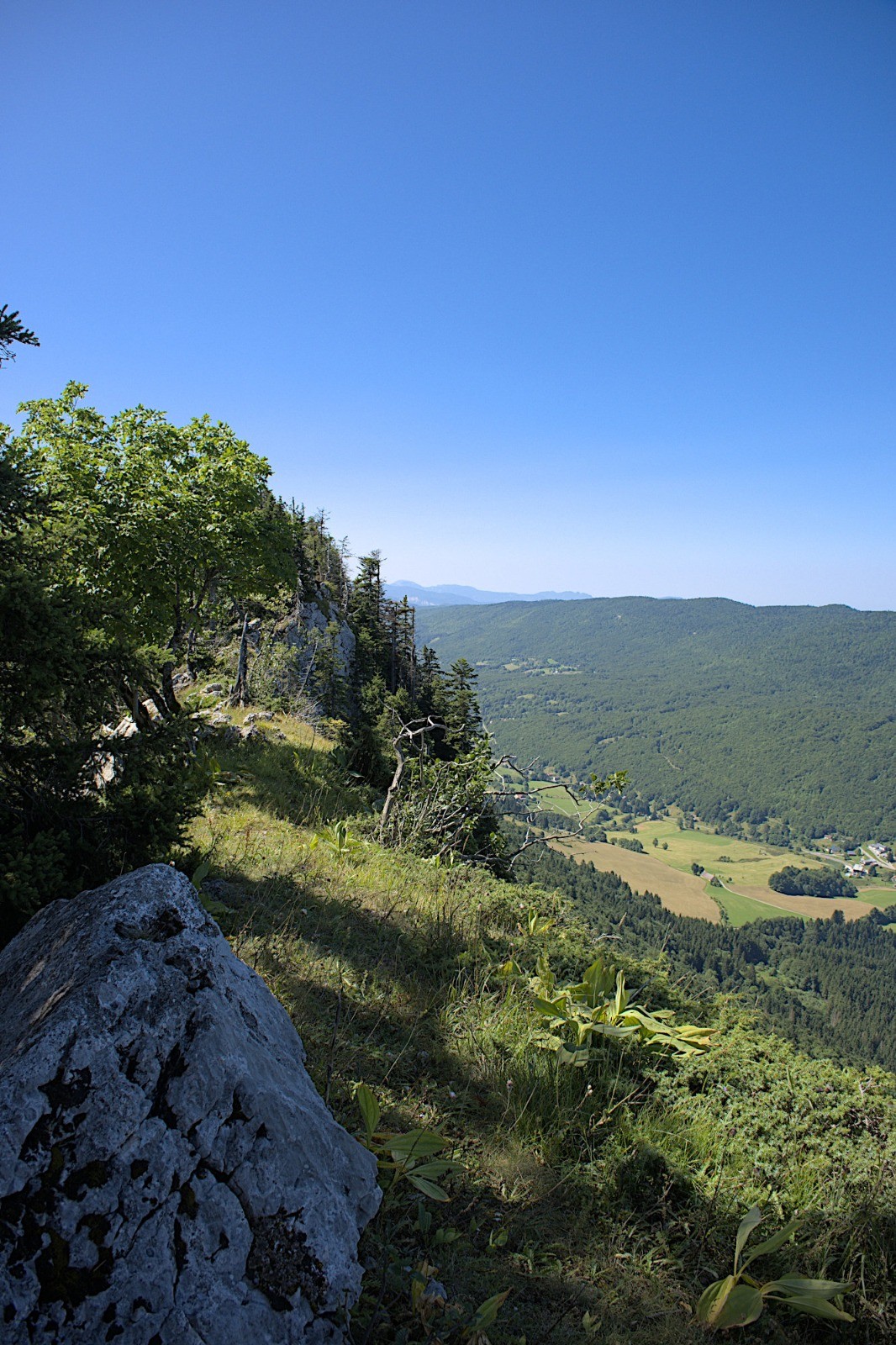 A noter : très beau belvédère sur une arête herbeuse (qui est aussi la sortie des voies d'escalade) en haut de la combe du Trou du Vau.