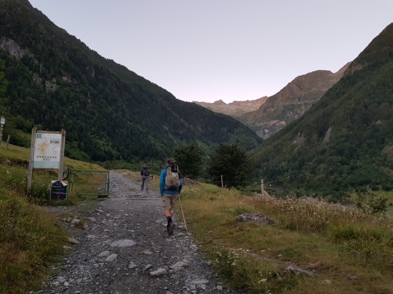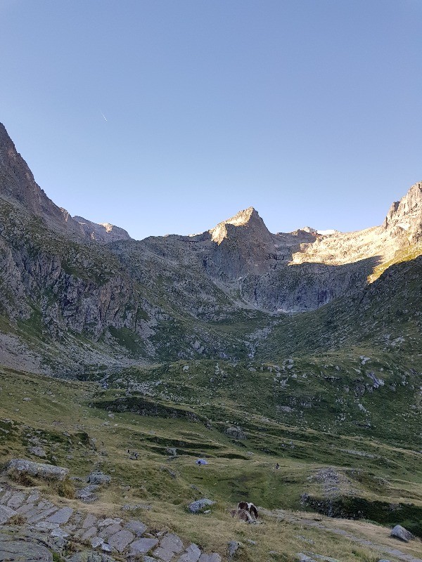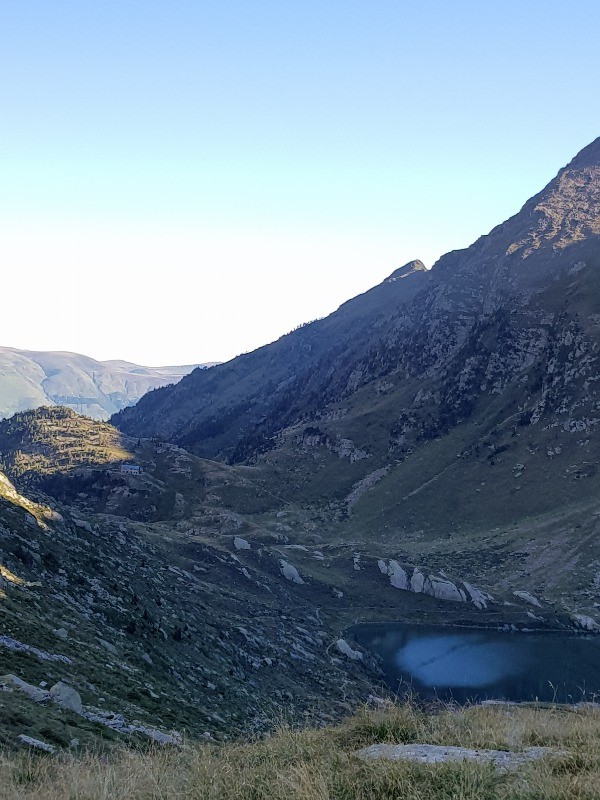 Si vous êtes intéressés pour du lac du literole descendre à l'hospice de Benasque reprendre la trace ou elle s'arrête passer le col au niveau d'un névé (désolé, je n'ai pas le nom du pic à côté duquel on est descendu il ressemble à un cône, par contre le chemin est mal dessiné quoique qu'avec les traces que l'on a faite.... peu cairné et bien pentu, une fois passé ce passage délicat on arrive sur une partie herbeuse et le torrent qui serpente c'est superbe, on poursuit sur le même chemin le long du torrent jusqu'à une séparation, passer sur la rive gauche et poursuivre le sentier. Arrivé à un pont en bois, prendre le chemin de gauche balisé jaune et vert qui entre dans une forêt de pins et arrive au dessus de l'hospice de Benasque. le personnel côté self est très sympa et on y mange bien, prix corrects il nous fallait reprendre des forces.