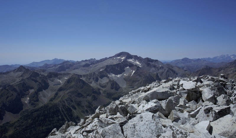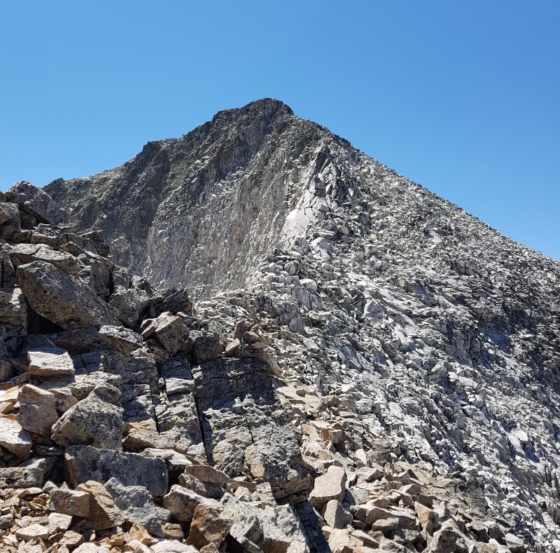 Arrivé au col supérieur, la montée au Perdiguére parait impressionnante au niveau de la cheminée mais cela se fait très bien , poursuivre en suivant les cairns sur un bon caillou stable , la vue du sommet est remarquable , redescendre par le même chemin .