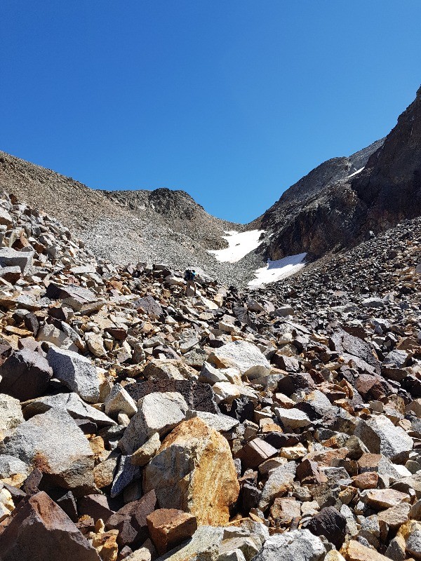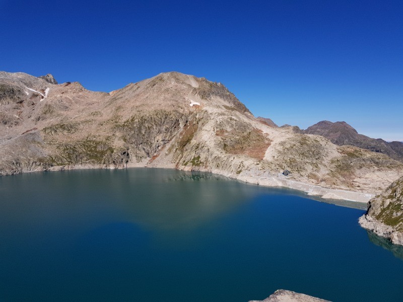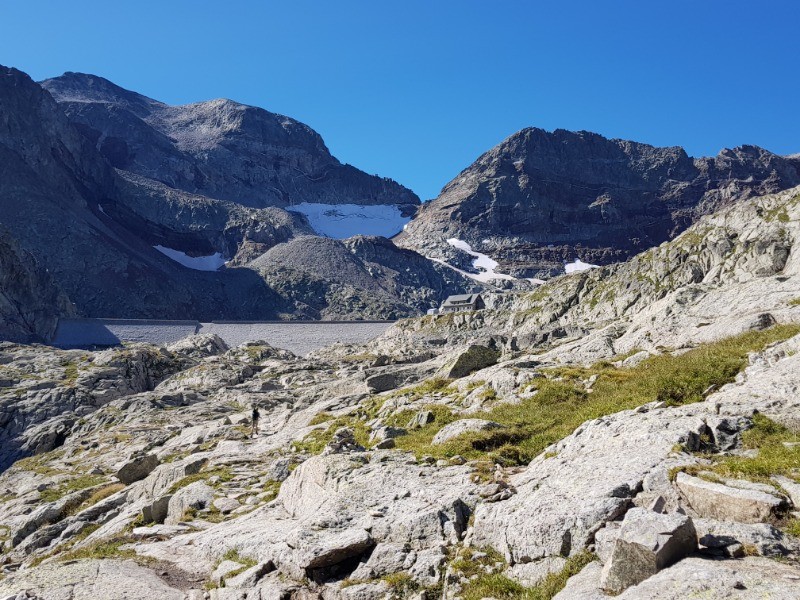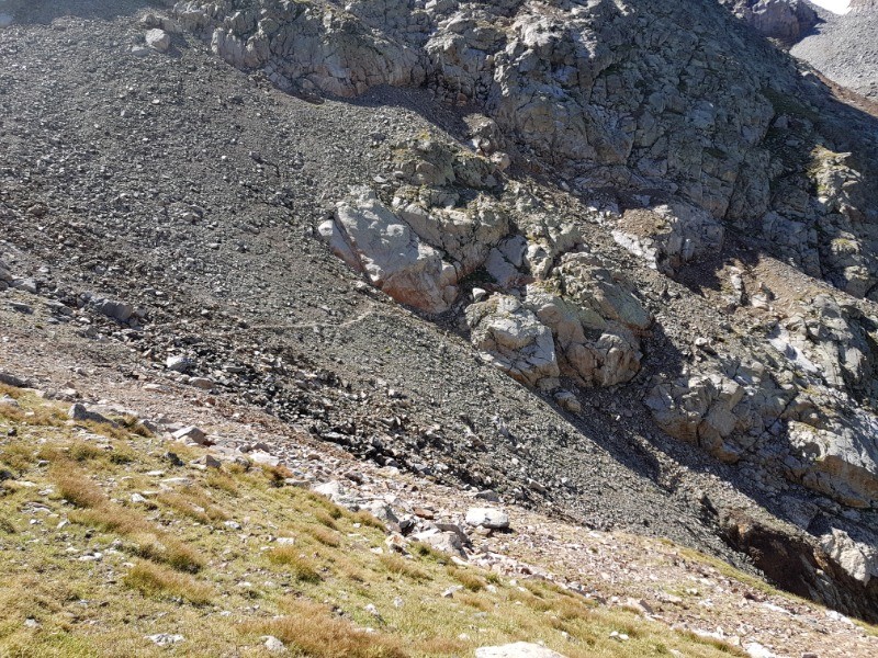 Ensuite traverser le barrage et prendre le même itineraire que la montée au col inférieur du Literole jusqu'à une séparation, le chemin part sur la droite être attentif pour le voir et ne pas aller trop haut , le début du sentier est correct et monte pas trop raide jusqu'à un cône d'éboulis à partir de là c'est très instable, fatiguant jusqu'au col supérieur. (l'idéal passer sur la partie haute)