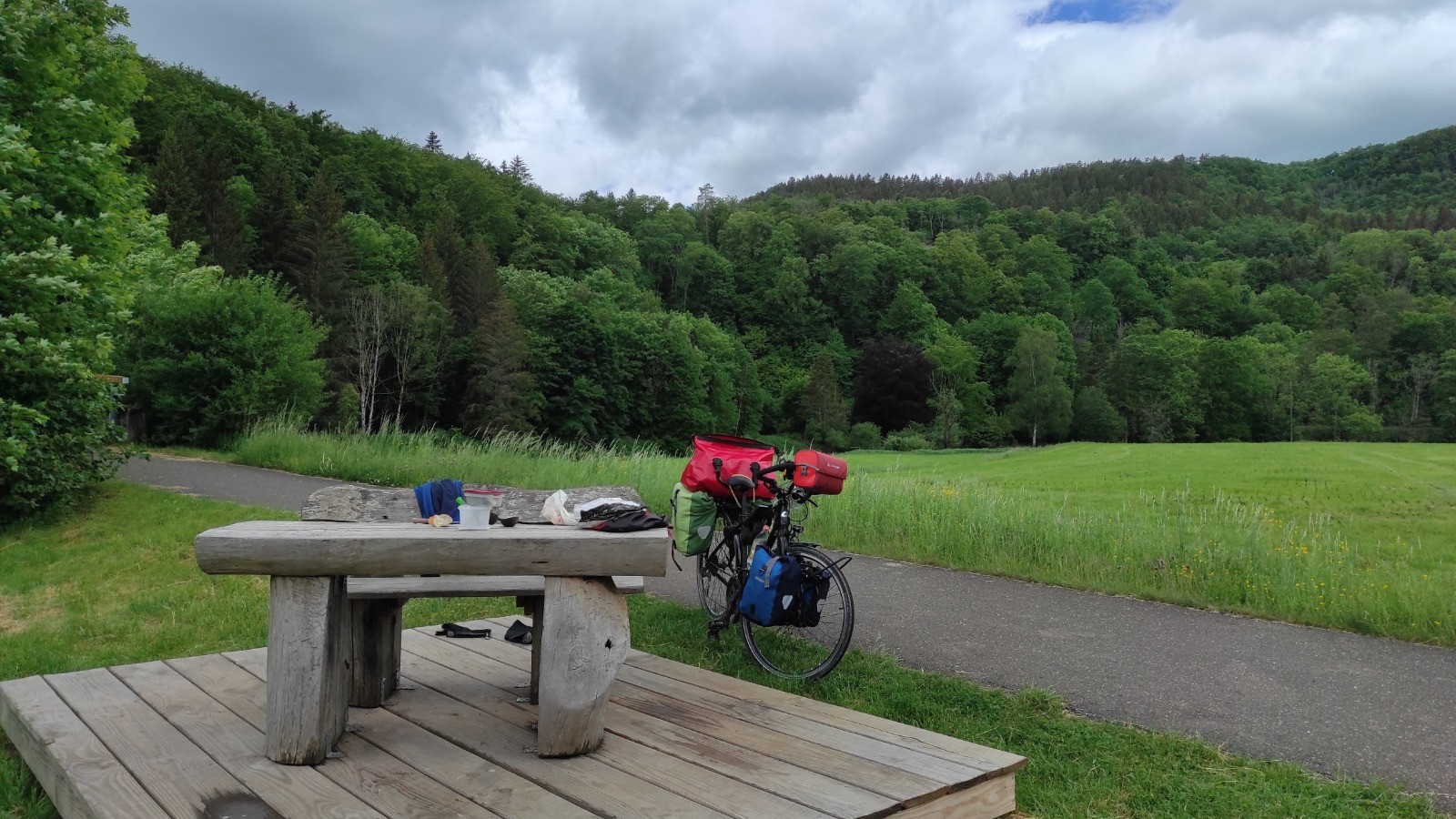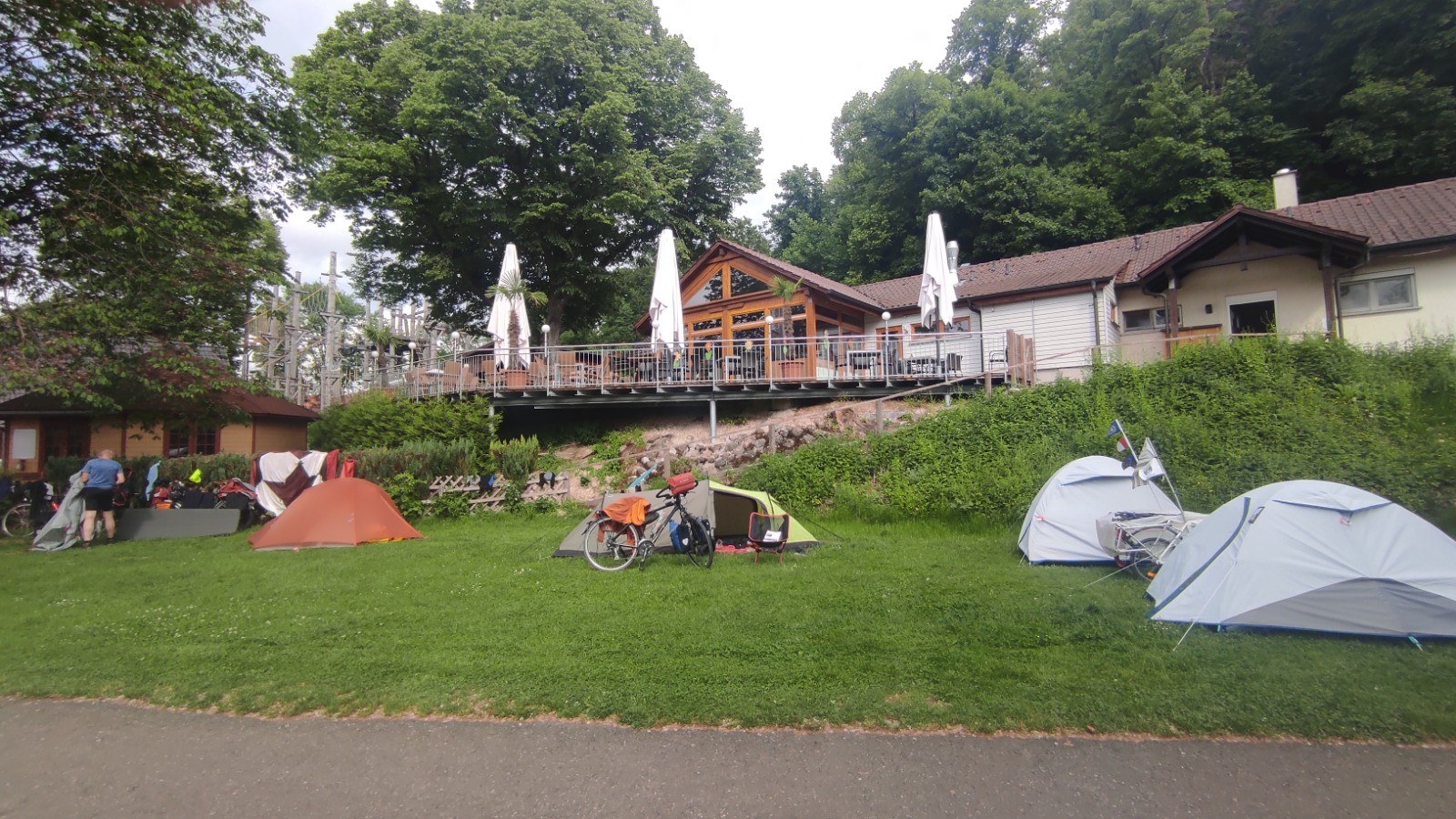 À Sigmaringen, au camping, c'est moins fun. Il est plein de jeunes faisant du canoë, près de la route. Un petit coin sympa quand même pour les tentes.