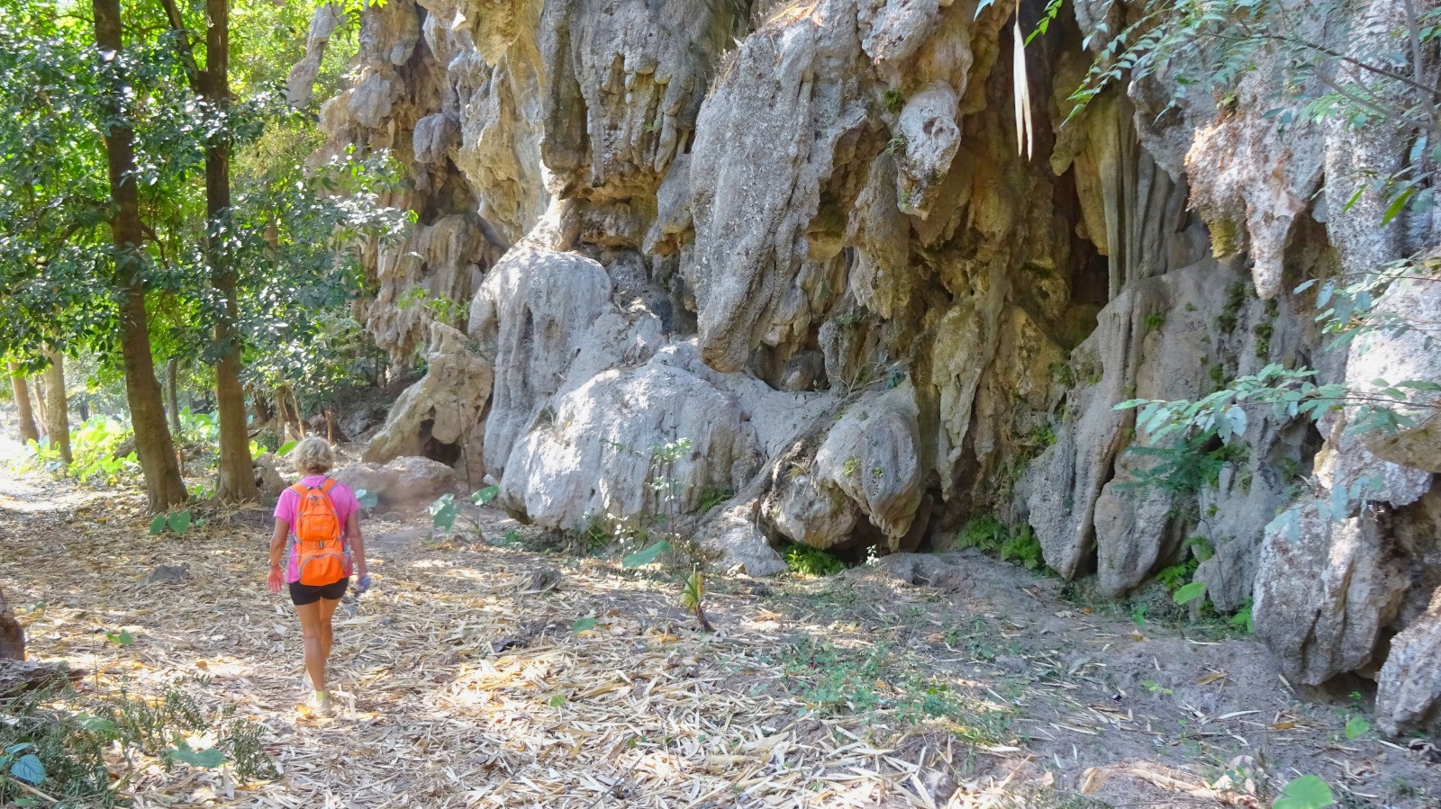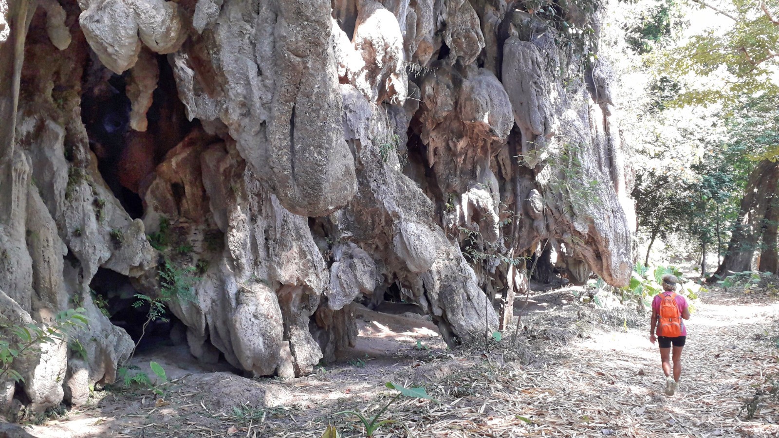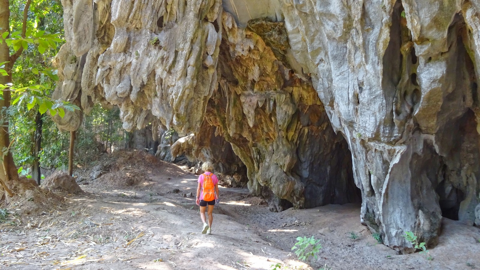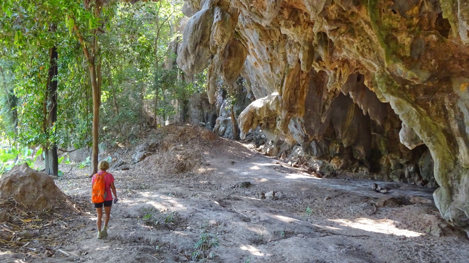 L'après midi on enchaine par Tham Nam Non, une grotte immense avec des abords très photogéniques, toutefois un petit jardinage s'impose pour trouver l'accès (problème corrigé j'ai cartographié le chemin d'accès sur OSM).