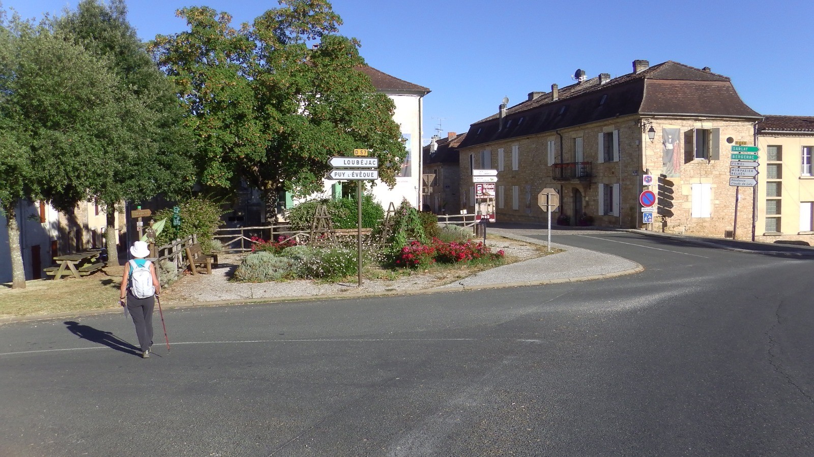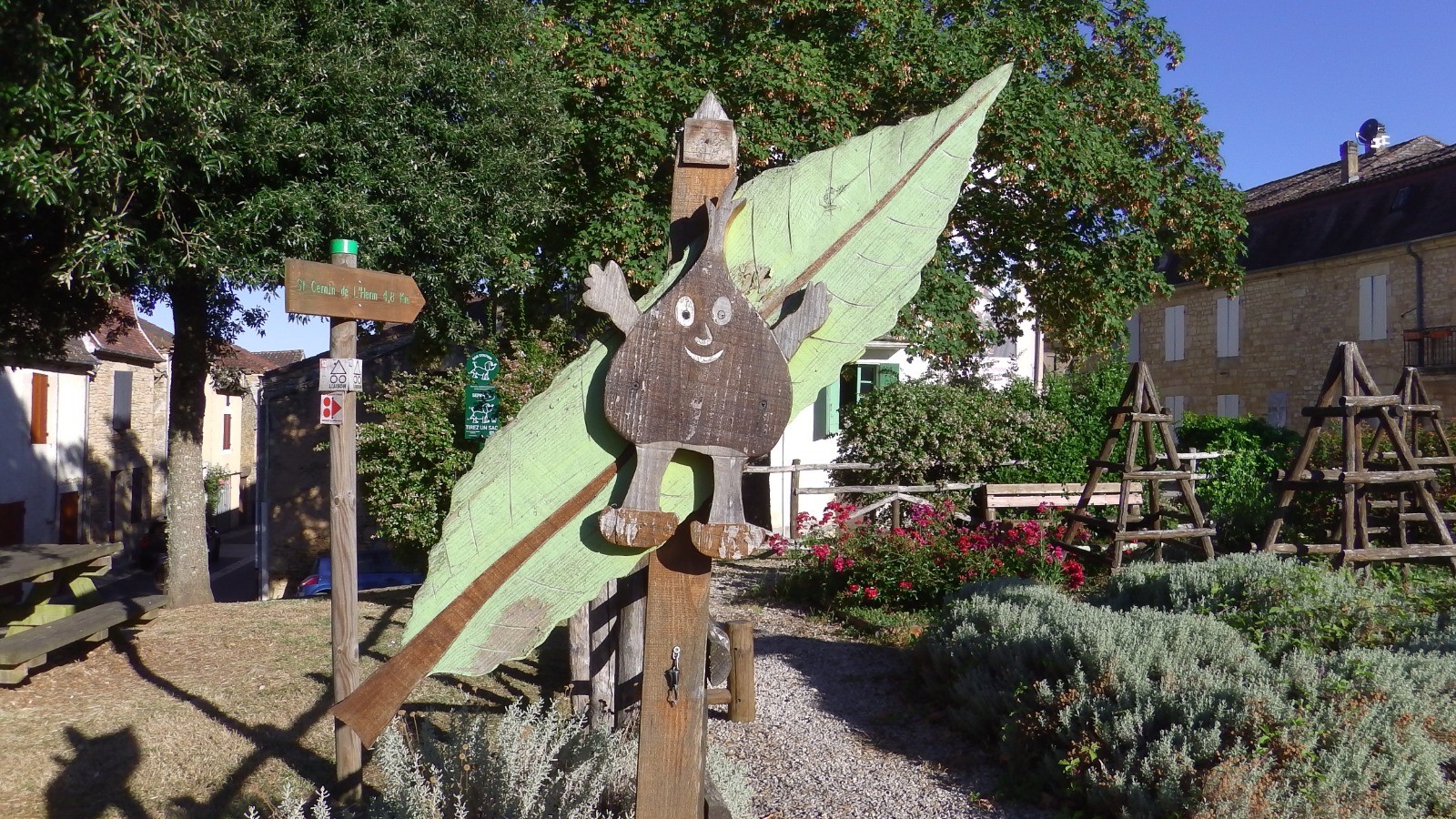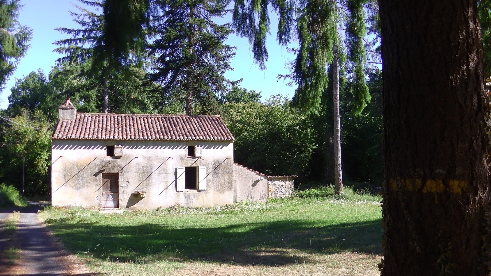 Boucle balisée en jaune (poteaux avec cabochon plastique jaune, typiques de la Dordogne)