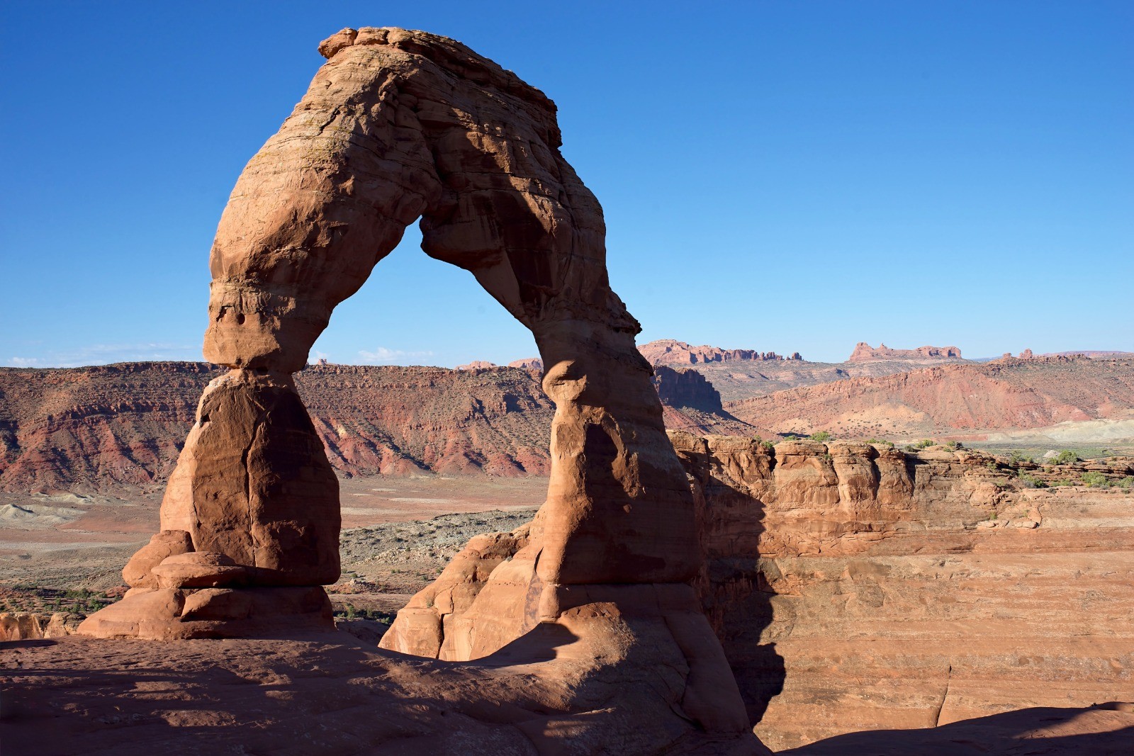 Il y a deux façon facile de s'approcher de cette arche magnifique: en suivant le sentier principal (4.6 km aller retour) bien balisé et cairné, depuis Wolfe Ranch, ou en partant de Lower Delicate Arch Viewpoint.