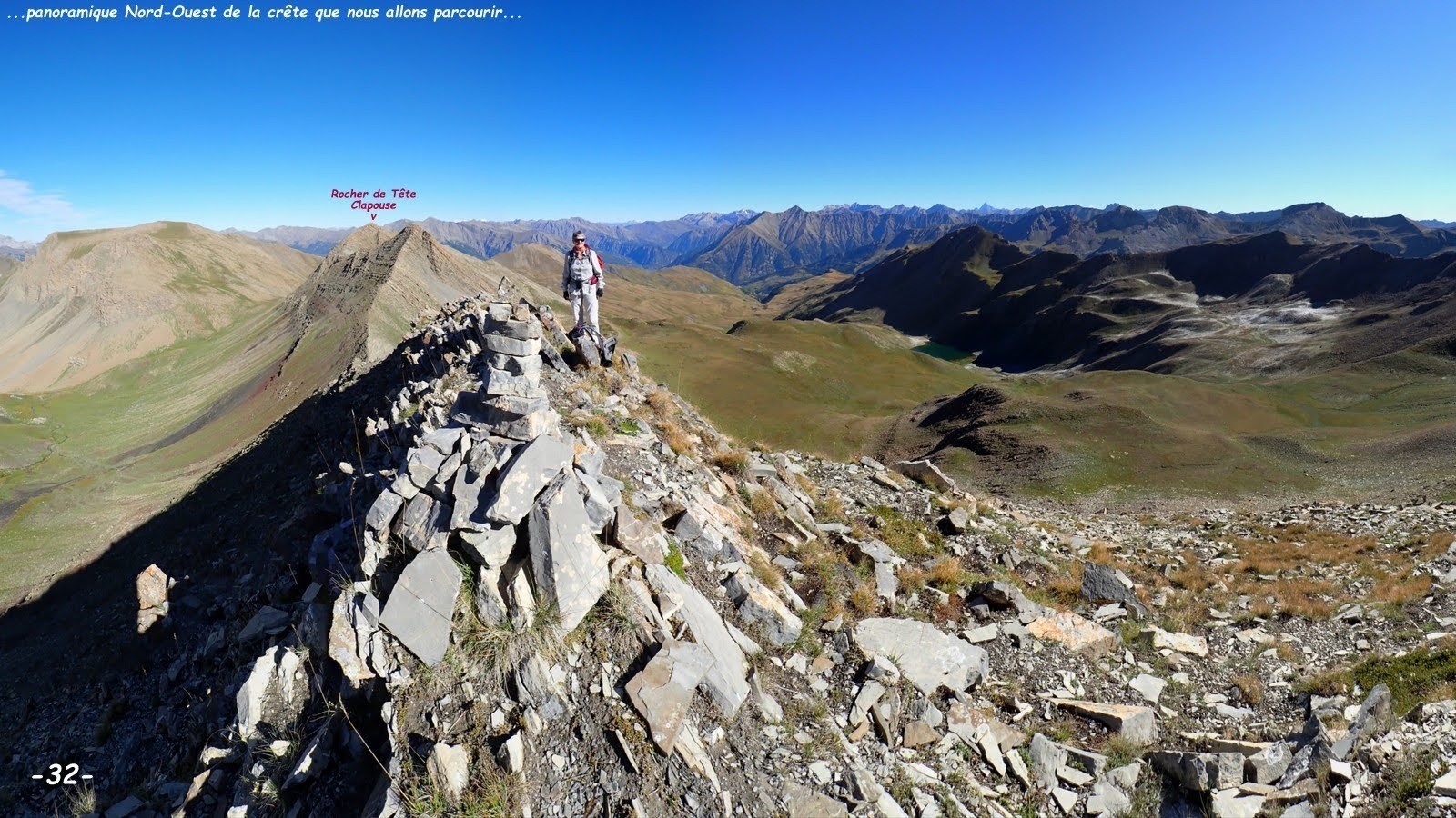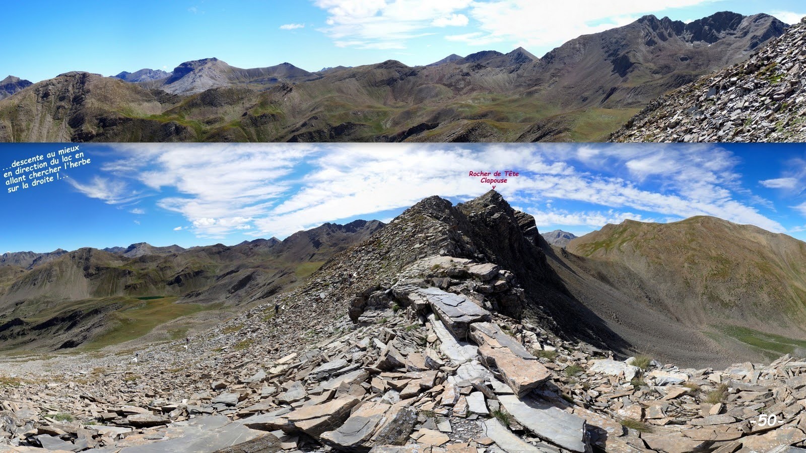 Tour des Trois Serrières, 2702 m : Rocher de Tête Clapouse, 2750 m, son point culminant, max du jour, généralement mis en exergue par l'Ours ! mais où est-ce donc ? et qu'est-ce qui a bien pu faire que