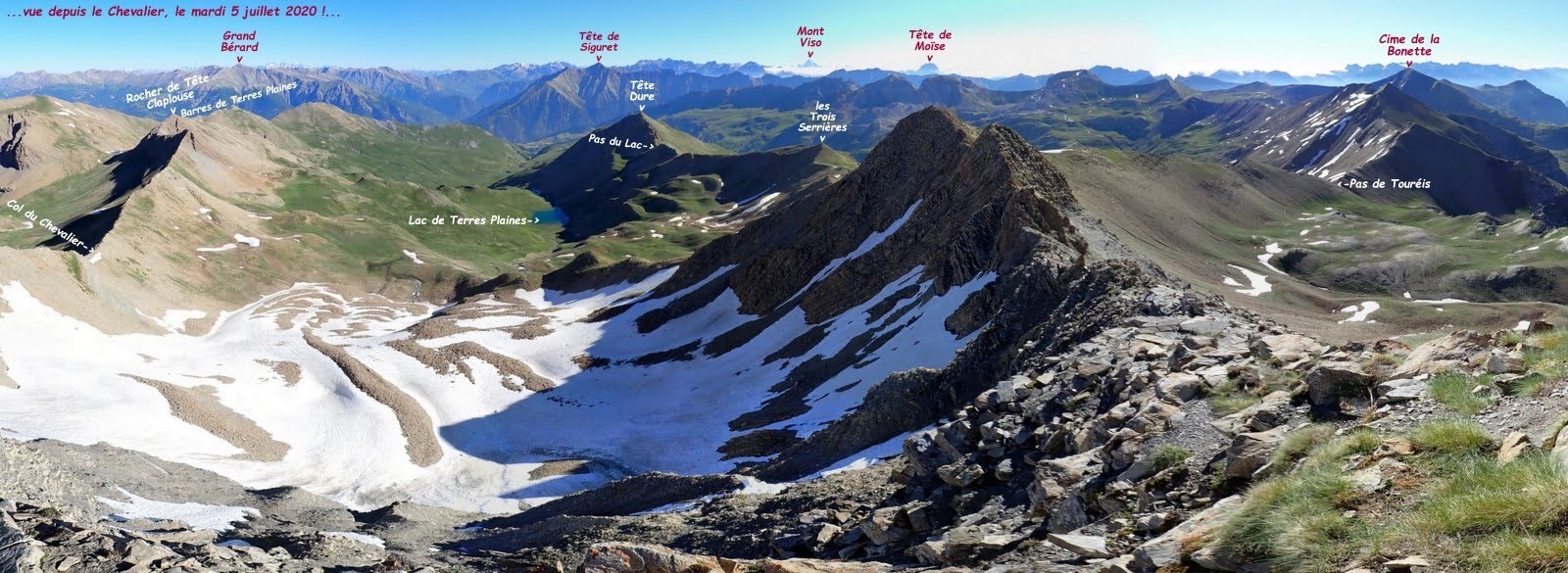 Album-400_ le Chevalier et Ventebrun, Lac Verdet, depuis la cote 2407 m de la Route du Col de Restefond, juillet 2020 :