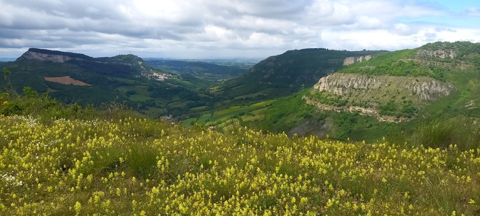 Dernière randonnée du séjour dans l'Aveyron des pousse-cailloux sur le chemin du retour, le cirque de Tournemire. C'est un formidable habitat naturel pour une faune et une flore variées. Il présente des corniches calcaires et des escarpements rocheux avec des grottes et cavités où y nichent des rapaces. A l'extrémité de la crête un point de vue époustouflant de la croix de Grépounac.
