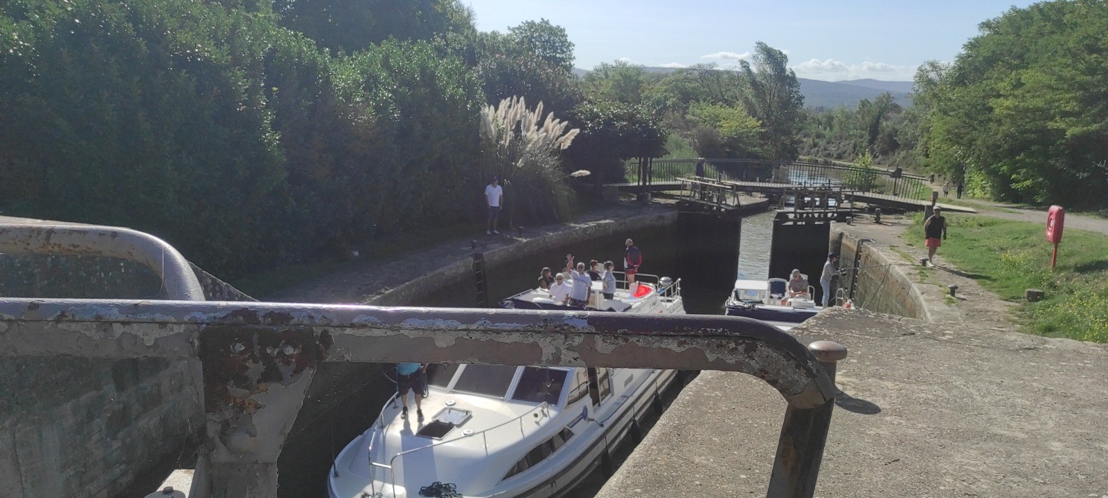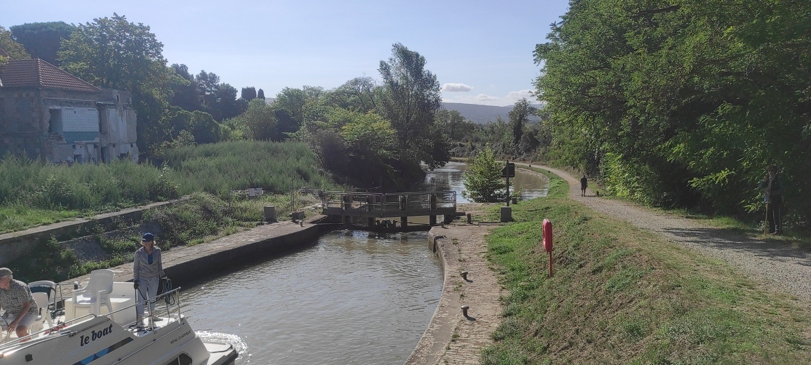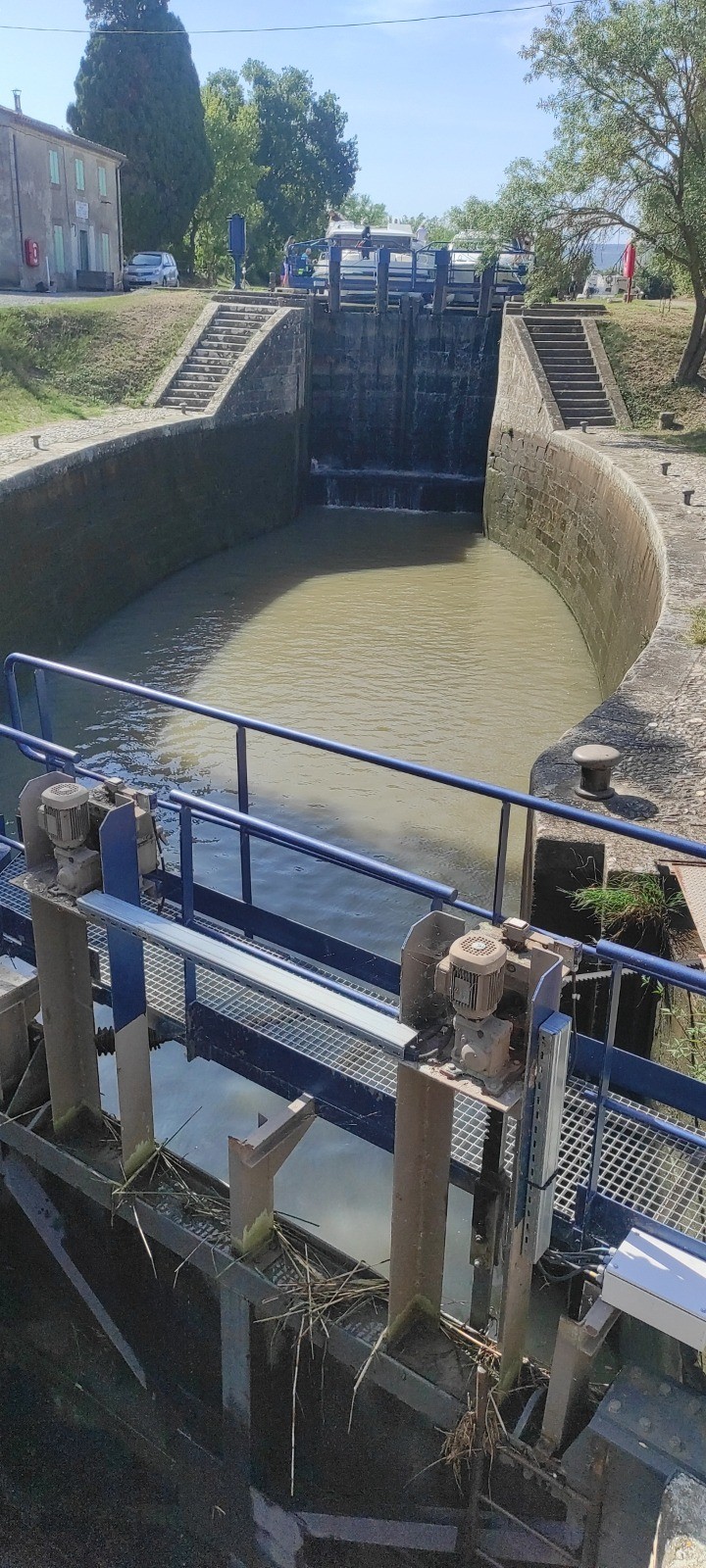 Je roule beaucoup et m'arrête aux écluses, certaines sur plusieurs niveaux. Le terrain est toujours du chemin mais globalement assez roulant. J'irais finalement assez près de bezier. Peu de commerces et de café d'ouverts. J'ais fait le plein pour la soirée et même demain.