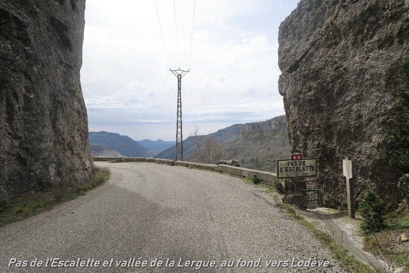 Départ près de Lodève par un routin sans issue et quasiment sans circulation. Arrivé sur le causse, le bitume se transforme en chemin de terre et de cailloux. Juste avant les Sièges, on retrouve le bitume. Ne pas manquer de faire le détour par St Félix de l’Héras, petit village caussenard charmant, notamment La Chapelle tout juste restaurée. Ne pas non plus manquer le détour par l’ancienne N9 au pas de l’Escalette. Vue imprenable sur le lodévois. Le passage entre les rochers et la route sous les falaises sont impressionnants. Selon la saison, la Lergue qui franchit le pas en cascade entre les blocs de rochers géants est aussi très jolie.