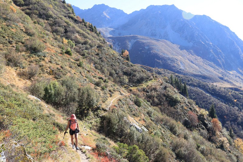 chalet de la Grande Valloire, suivre le chemin à flanc (quelques montées) qui rejoint le