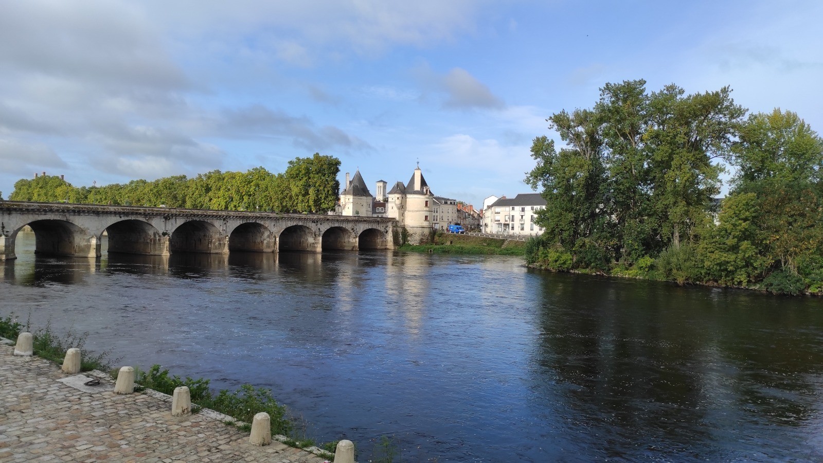 Enfin le beau temps toute la journée, même si j'ai craint une ondée à l'arrivée au camping. Le trajet suis globalement la Vienne, et même si les abords sont privatisés on à de très belles vues. Le trajet n'est pas celui de mon topo ni celui de viewranger mais suis un tracé que m'avait donné l'Office de tourisme de Châtellerault qui est celui fléché.